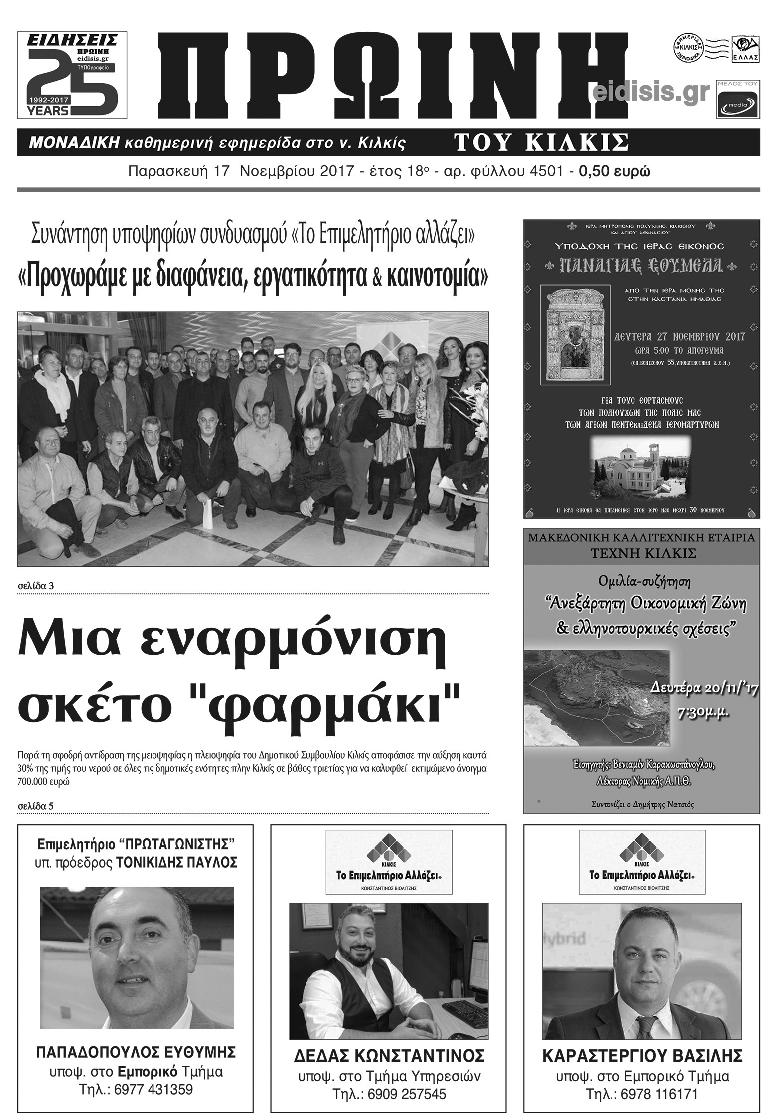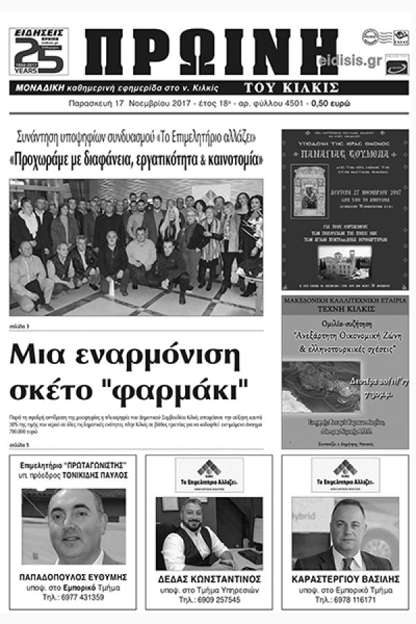 Πέντε χρόνια πριν. Διαβάστε τι έγραφε η καθημερινή εφημερίδα ΠΡΩΙΝΗ του Κιλκίς (17-11-2017)