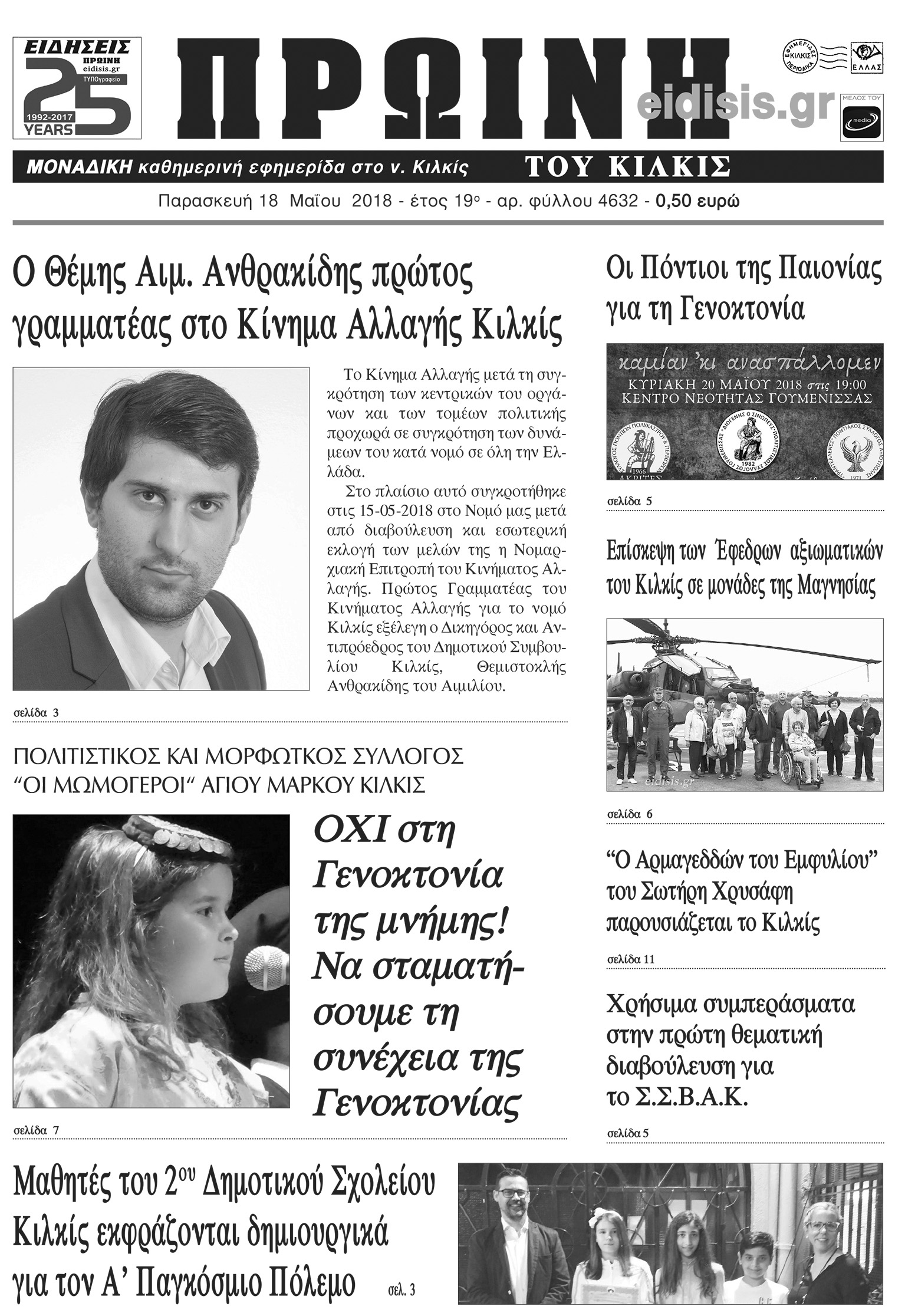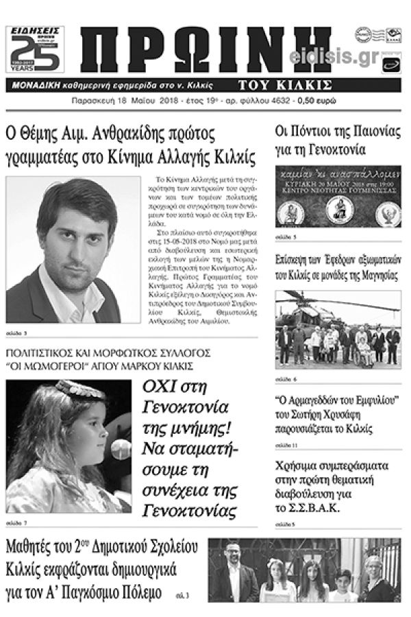 Πέντε χρόνια πριν. Διαβάστε τι έγραφε η καθημερινή εφημερίδα ΠΡΩΙΝΗ του Κιλκίς (18-5-2018)