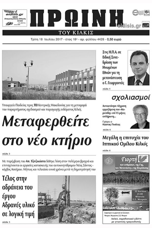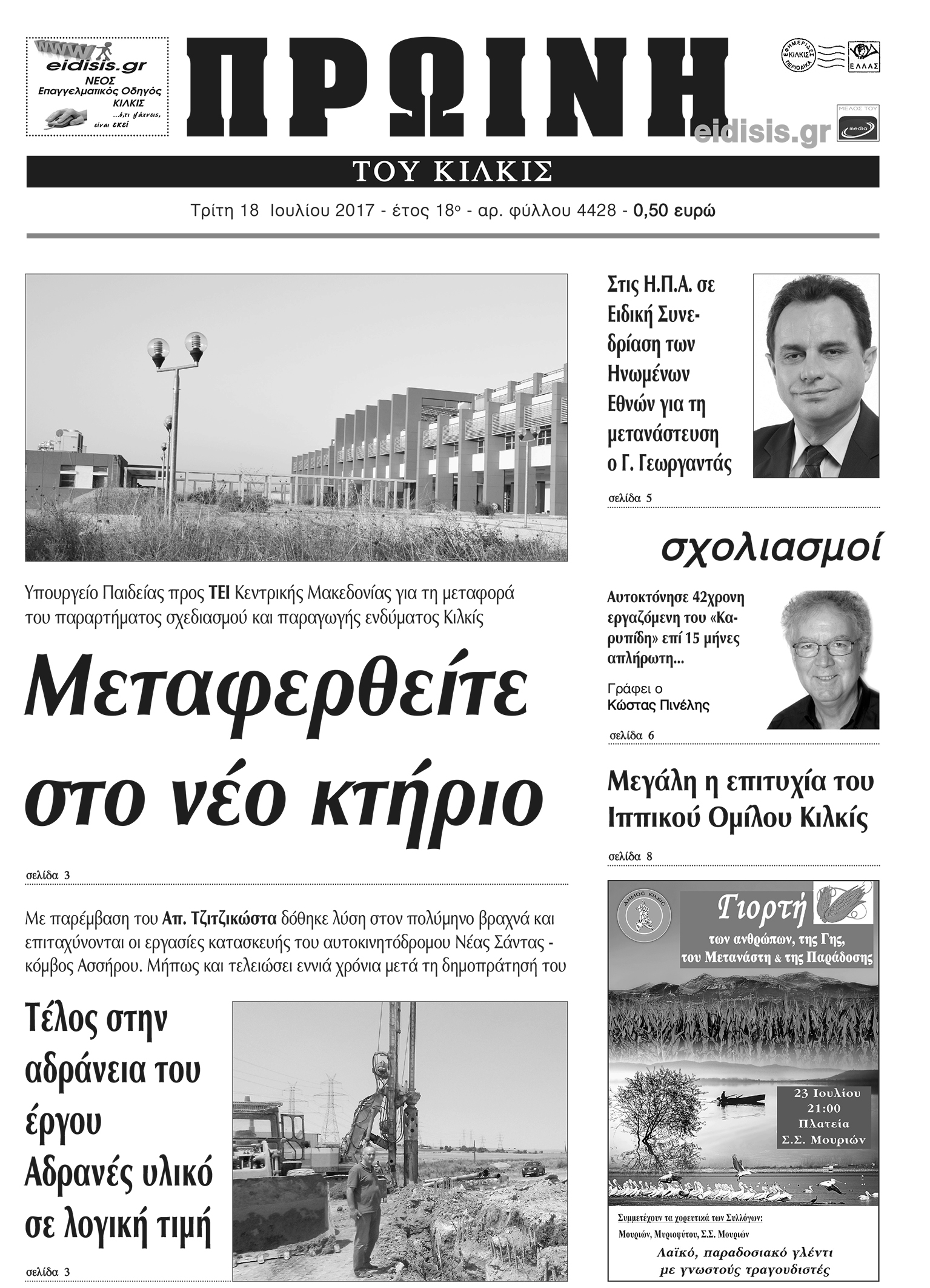 Πέντε χρόνια πριν. Διαβάστε τι έγραφε η καθημερινή εφημερίδα ΠΡΩΙΝΗ του Κιλκίς (18-7-2017)