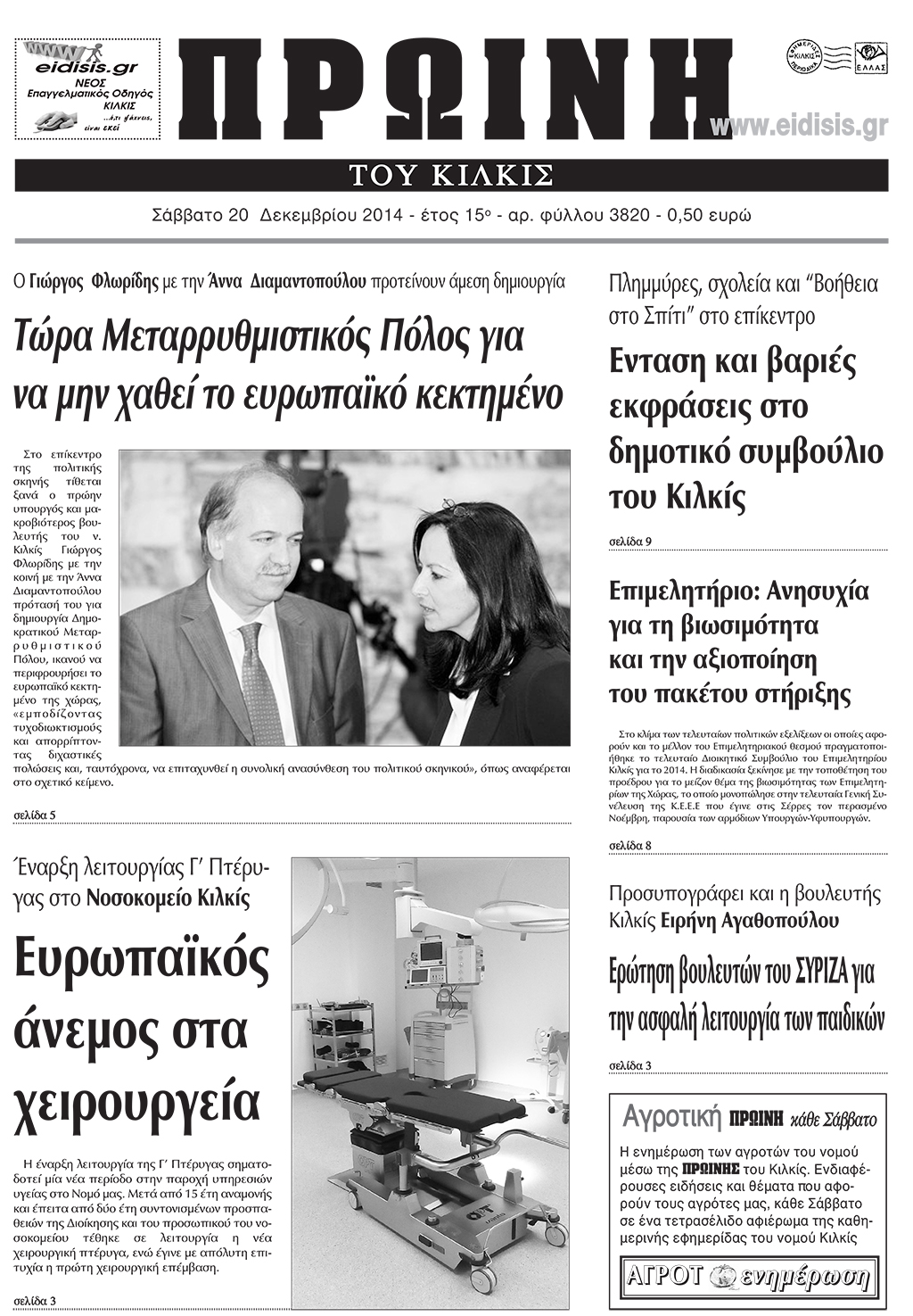 Πέντε χρόνια πριν. Διαβάστε τι έγραφε η καθημερινή εφημερίδα ΠΡΩΙΝΗ του Κιλκίς (20-12-2014)