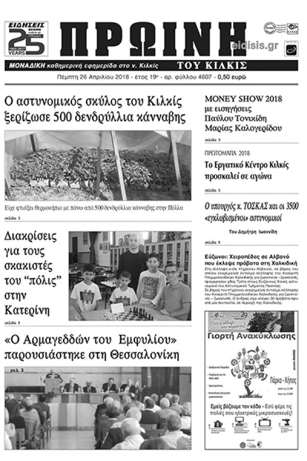 Πέντε χρόνια πριν. Διαβάστε τι έγραφε η καθημερινή εφημερίδα ΠΡΩΙΝΗ του Κιλκίς (26-4-2018)