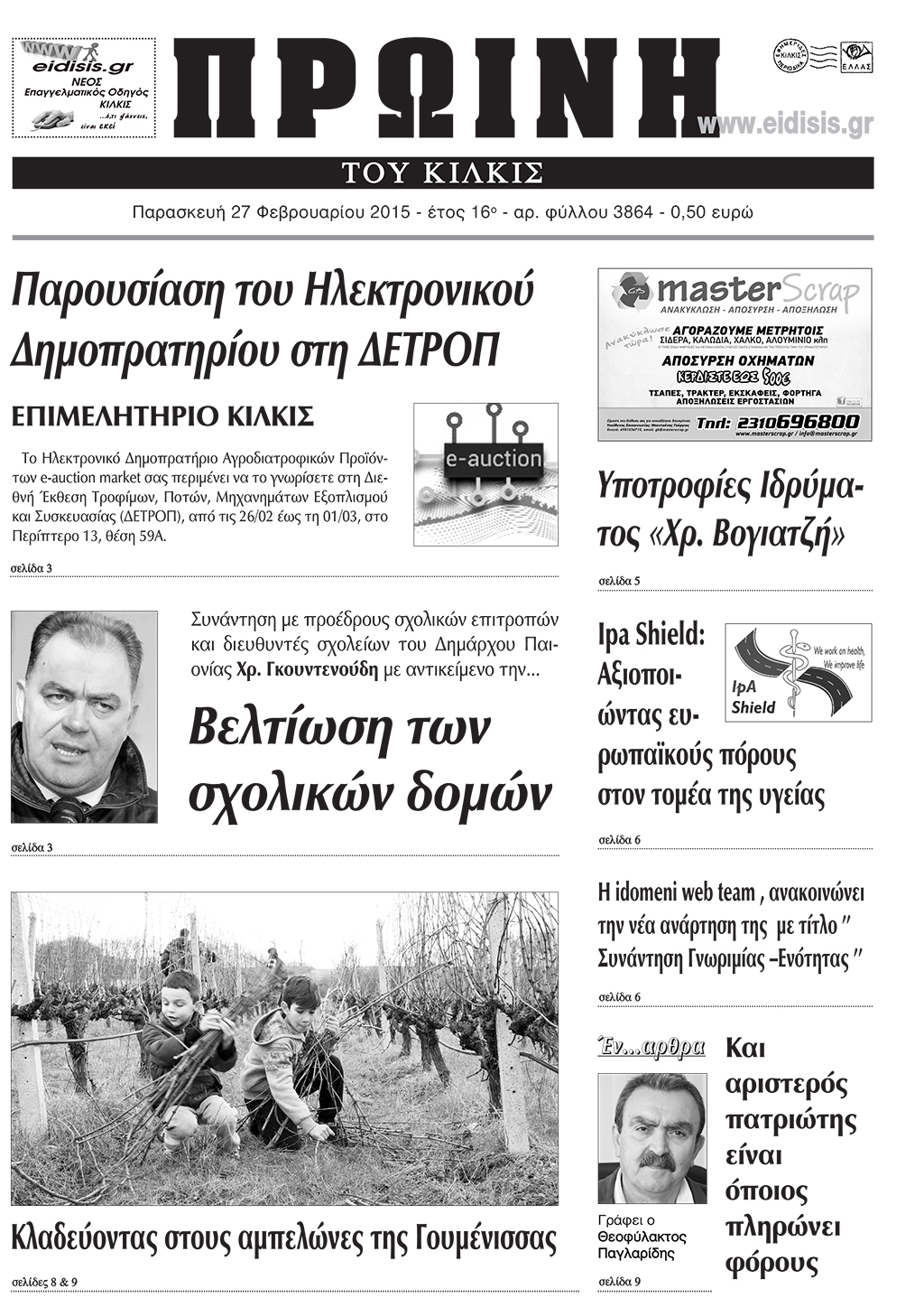 Πέντε χρόνια πριν. Διαβάστε τι έγραφε η καθημερινή εφημερίδα ΠΡΩΙΝΗ του Κιλκίς (27-2-2015)
