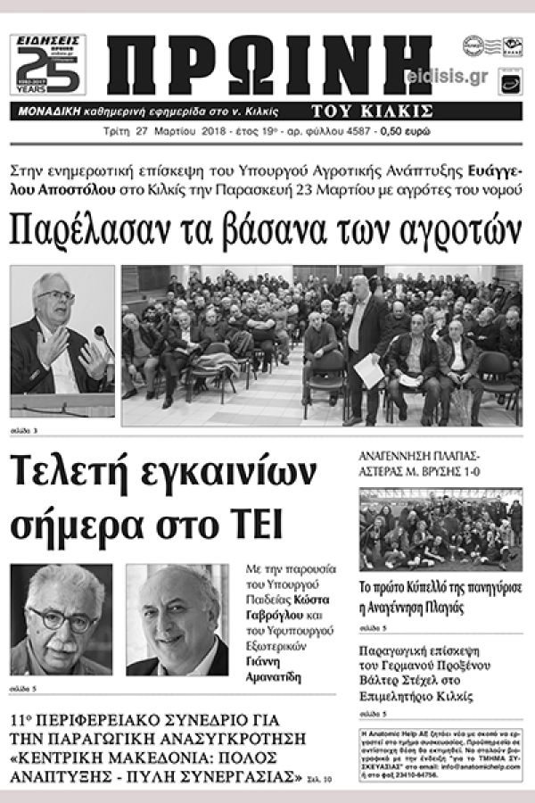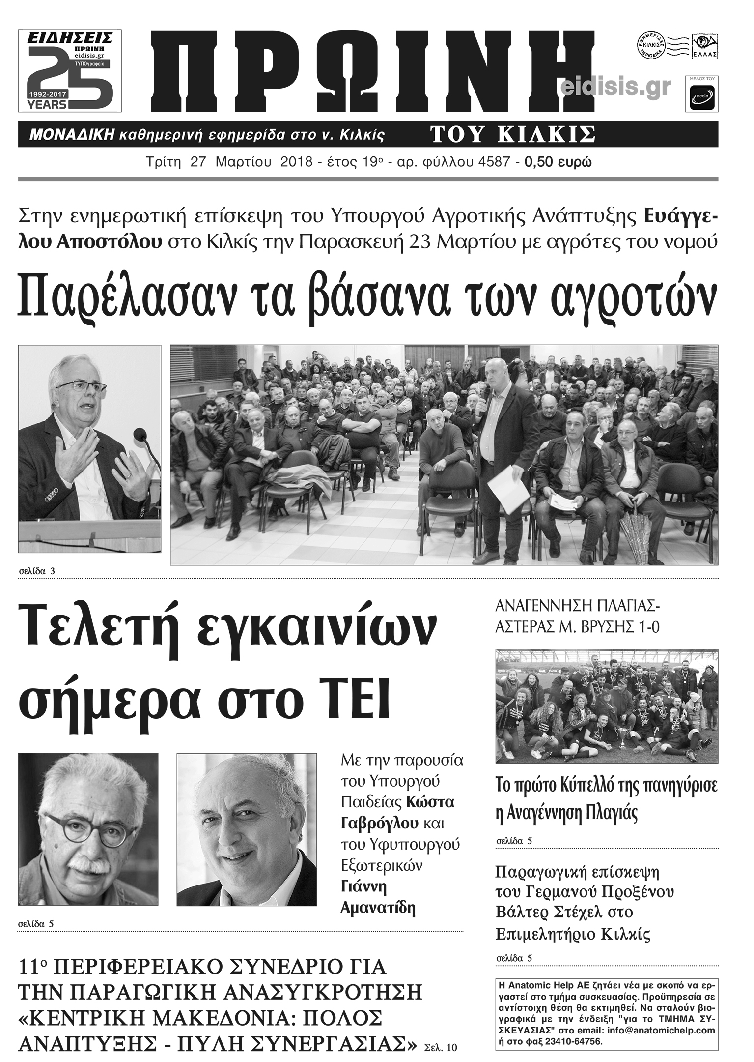 Πέντε χρόνια πριν. Διαβάστε τι έγραφε η καθημερινή εφημερίδα ΠΡΩΙΝΗ του Κιλκίς (27-3-2018)