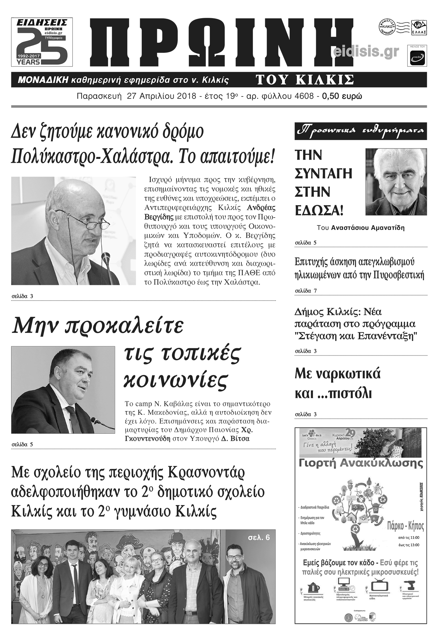 Πέντε χρόνια πριν. Διαβάστε τι έγραφε η καθημερινή εφημερίδα ΠΡΩΙΝΗ του Κιλκίς (27-4-2018)