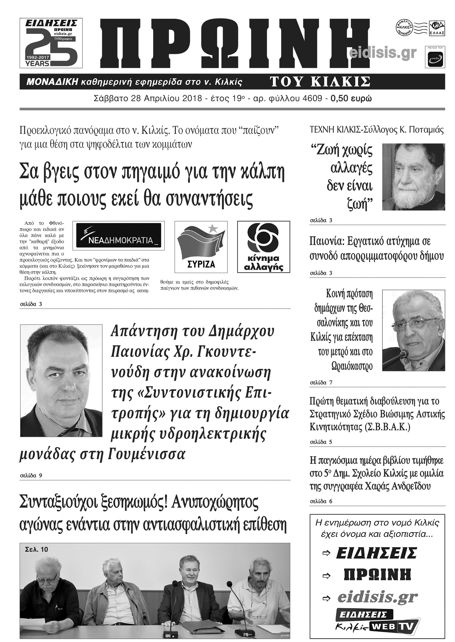 Πέντε χρόνια πριν. Διαβάστε τι έγραφε η καθημερινή εφημερίδα ΠΡΩΙΝΗ του Κιλκίς (28-4-2018)