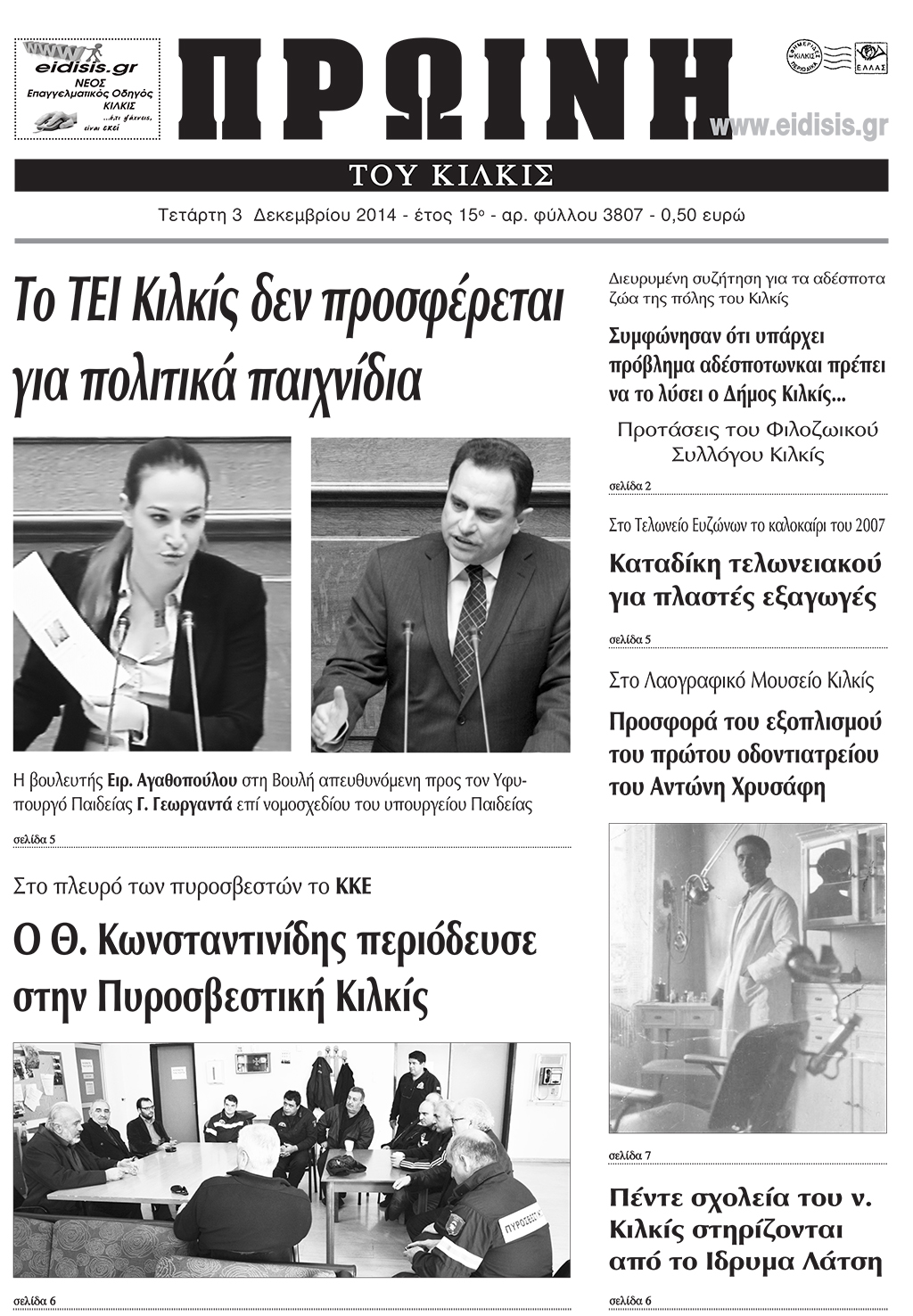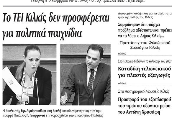 Πέντε χρόνια πριν. Διαβάστε τι έγραφε η καθημερινή εφημερίδα ΠΡΩΙΝΗ του Κιλκίς (3-12-2014)