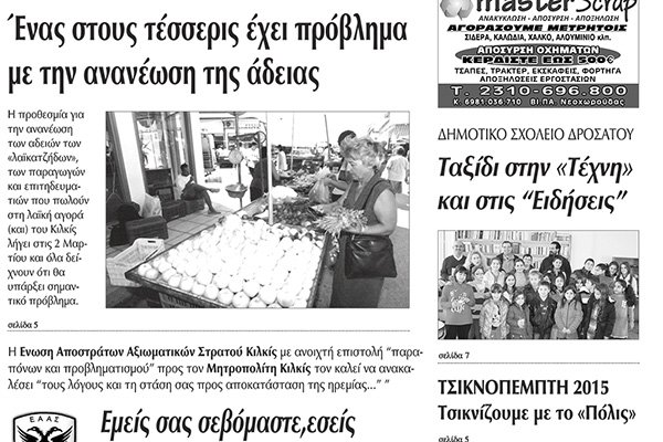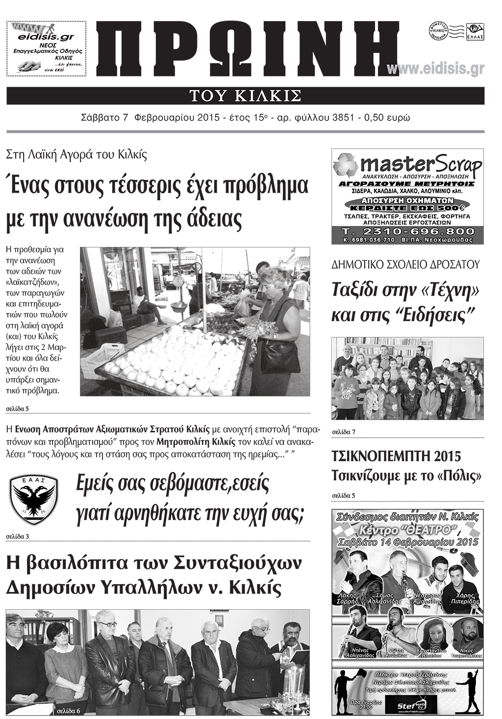 Πέντε χρόνια πριν. Διαβάστε τι έγραφε η καθημερινή εφημερίδα ΠΡΩΙΝΗ του Κιλκίς (7-2-2015)