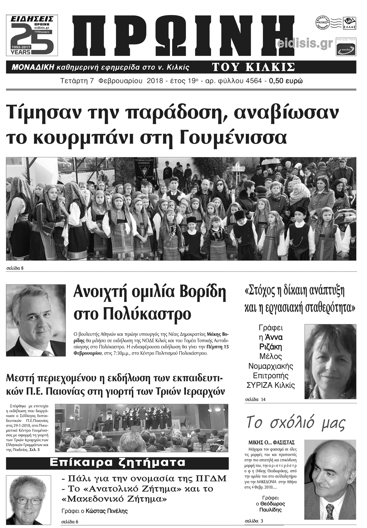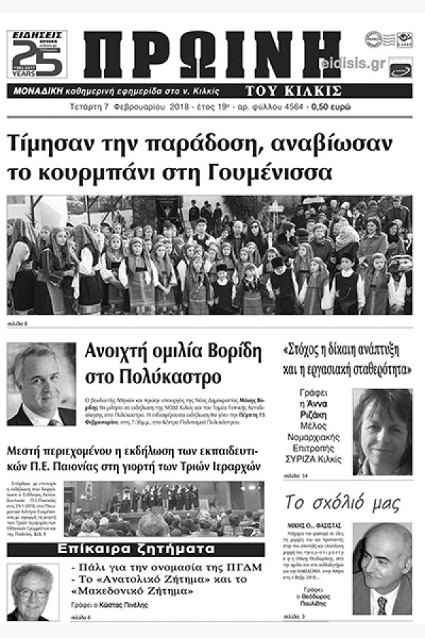 Πέντε χρόνια πριν. Διαβάστε τι έγραφε η καθημερινή εφημερίδα ΠΡΩΙΝΗ του Κιλκίς (7-2-2018)