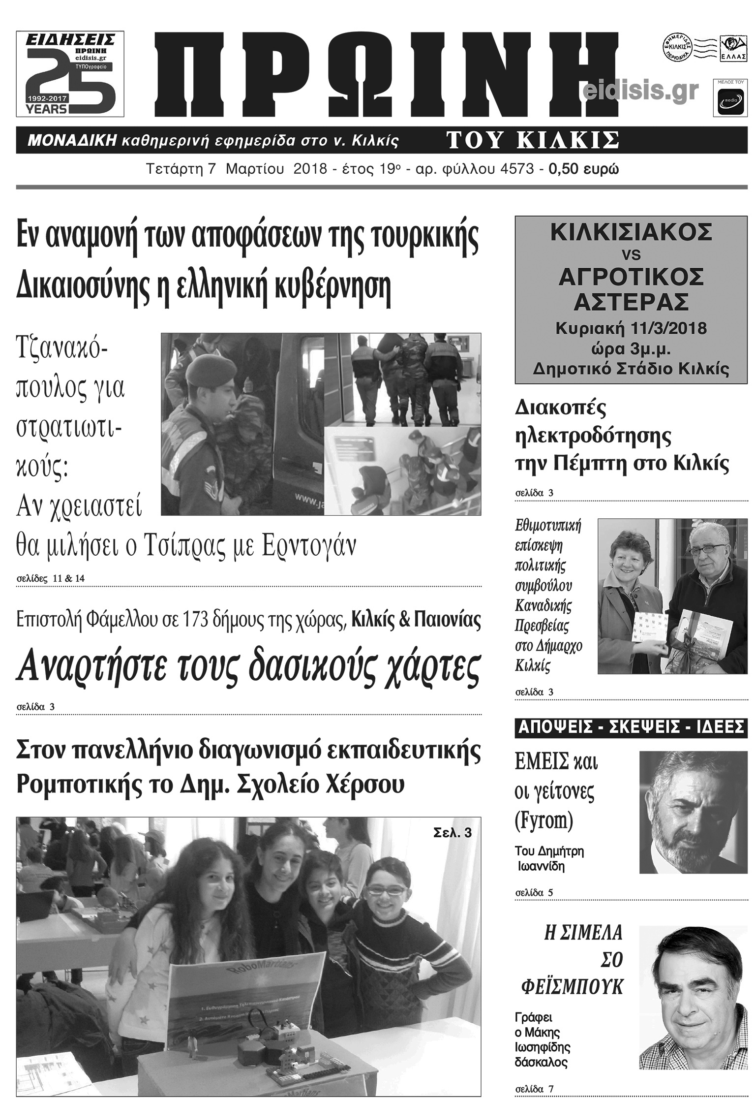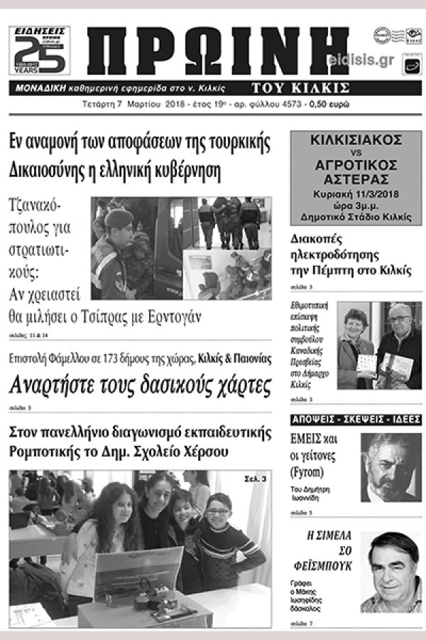 Πέντε χρόνια πριν. Διαβάστε τι έγραφε η καθημερινή εφημερίδα ΠΡΩΙΝΗ του Κιλκίς (7-3-2018)