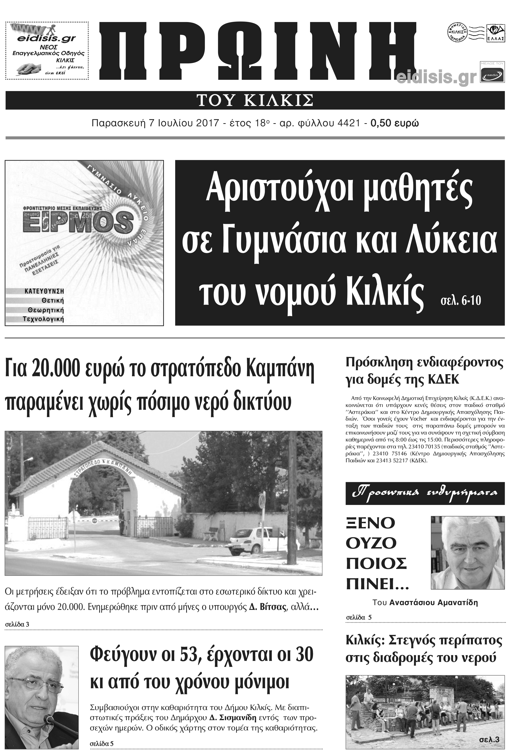 Πέντε χρόνια πριν. Διαβάστε τι έγραφε η καθημερινή εφημερίδα ΠΡΩΙΝΗ του Κιλκίς (7-7-2017)