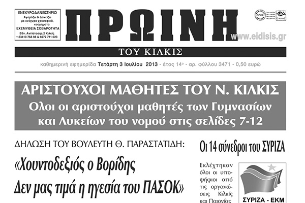 Πέντε χρόνια πριν. Διαβάστε τι έγραφε η ΠΡΩΙΝΗ του Κιλκίς