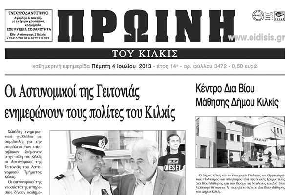 Πέντε χρόνια πριν. Διαβάστε τι έγραφε η ΠΡΩΙΝΗ του Κιλκίς