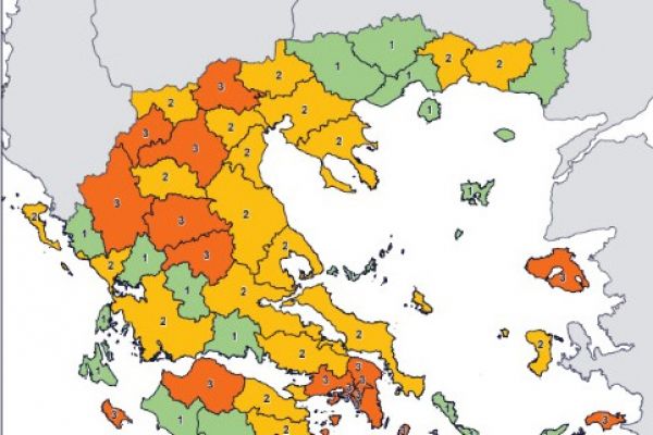Πρόκειται για τον Χάρτη Υγειονομικής Ασφάλειας, ο οποίος αποτελείται από 4 επίπεδα προληπτικών μέτρων για κάθε περιφερειακή ενότητα της χώρας.