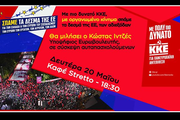 Στις ευρωεκλογές της 9ης Ιούνη, ΜΕ ΠΙΟ ΔΥΝΑΤΟ ΚΚΕ, στείλε μήνυμα καταδίκης στην ΕΕ της βαραβαρότητας, στην κυβέρνηση της ΝΔ και στους άλλους επίδοξους διαχειριστές της αντιλαικής πολιτικής.