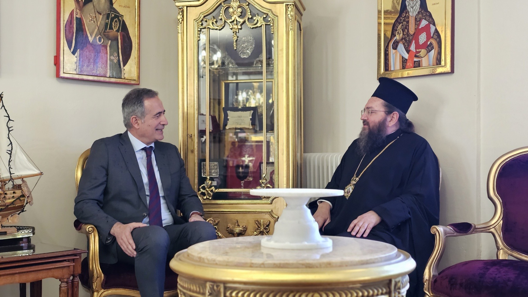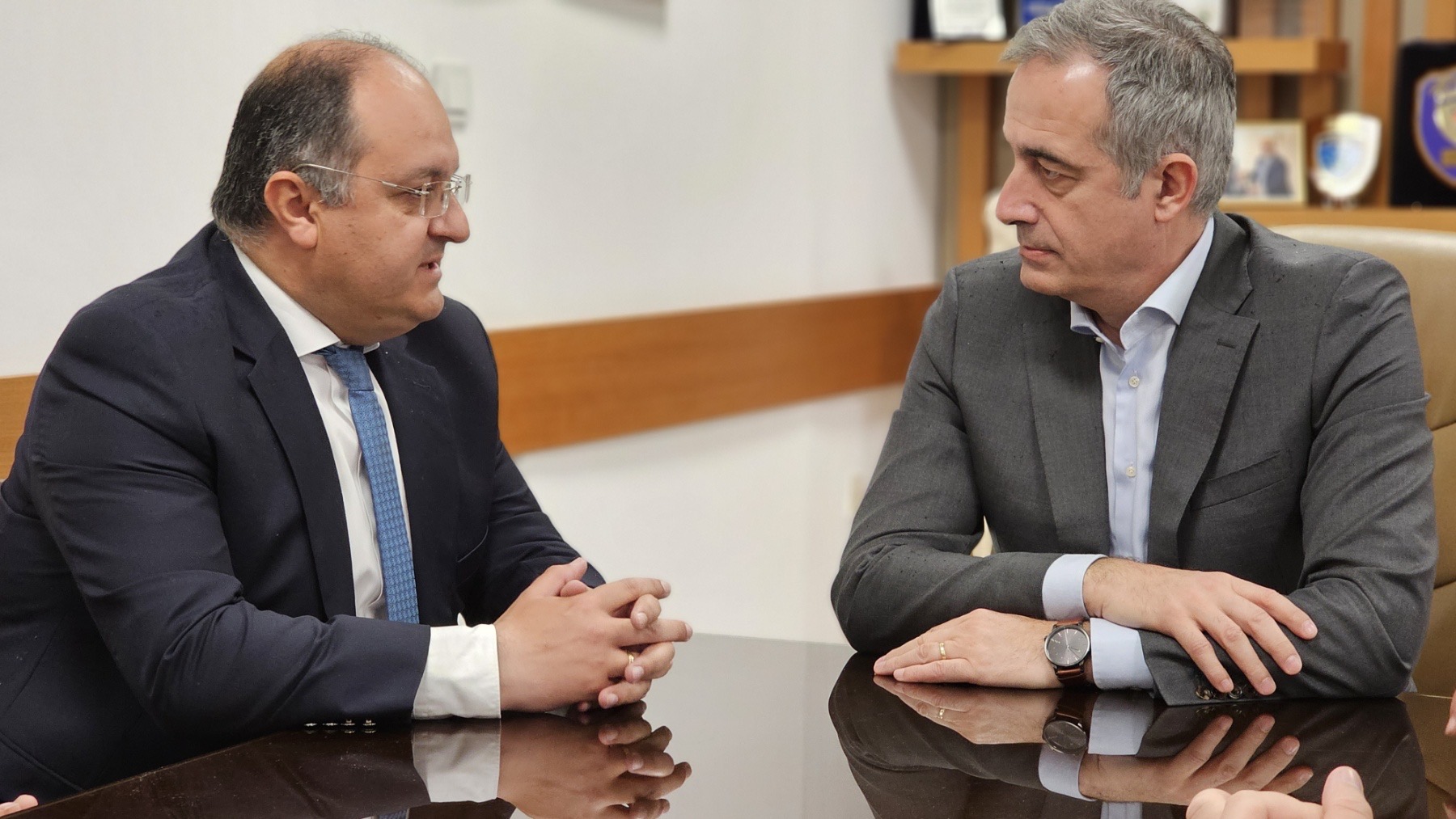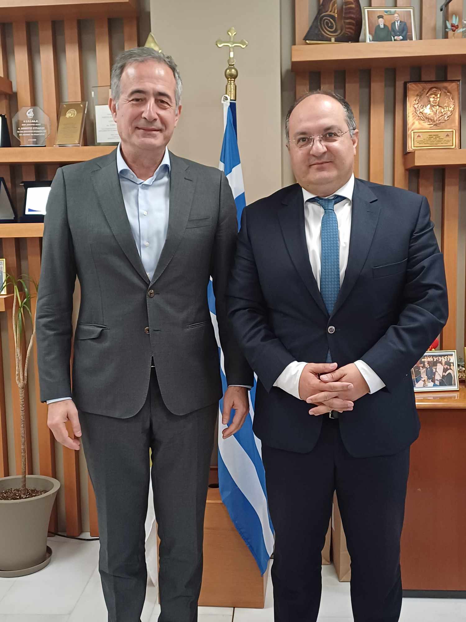 Ο κ. Βεργίδης επέδωσε αναμνηστικά δώρα στον κ. Κωνσταντινίδη. Νωρίτερα, ο κ. Βεργίδης και ο κ. Κωνσταντινίδης επισκέφθηκαν την υπό κατασκευή αίθουσα πολλαπλών χρήσεων (στο ισόγειο του Διοικητηρίου), όπου ο κ. Κωνσταντινίδης ενημερώθηκε για την πρόοδο των εργασιών.