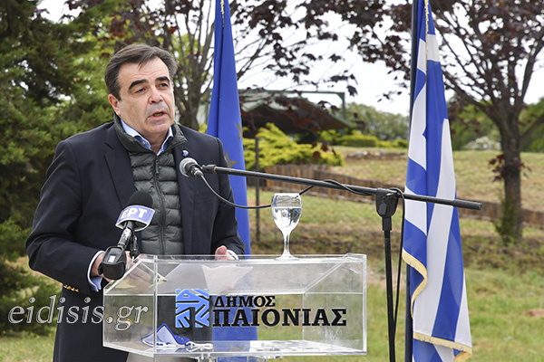 «Η σημερινή μου παρουσία εδώ την συγκεκριμένη ημέρα, ως ο πρώτος Μακεδόνας Επίτροπος και Αντιπρόεδρος, φωτίζοντας ακριβώς το ρόλο και την ερμηνεία της επιγραφής «Ευρωπαίων η Πόλις», αναδεικνύει την ξεχωριστή αυτή περίοδο, την Ευρωπαϊκή Πόλη που έλαμψε στην αρχαιότητα και μας δίνει σήμερα ένα σπάνιο στοιχείο της Ευρωπαϊκής Πολιτιστικής μας Κληρονομιάς», σημείωσε ο κ. Σχοινάς, ο οποίος ανακηρύχτηκε επίτιμος δημότης Παιονίας. Χαρακτήρισε, μάλιστα, «αυτονόητη» τη σύνδεση του χώρου, με τους ήδη γνωστούς θησαυρούς της περιοχής, τη γενέτειρα του Μεγάλου Αλεξάνδρου, στην Πέλλα, αλλά και τα ταφικά μνημεία των Αιγών στη Βεργίνα, του γενάρχη του Βασιλείου, Φίλιππου Β'.
