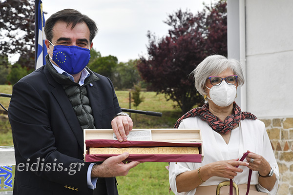 Ο δήμαρχος Παιονίας δώρισε στον κ. Σχοινά ένα αντίγραφο του Κούρου Ευρωπού, η προϊσταμένη της Εφορείας Αρχαιοτήτων Κιλκίς ένα αντίγραφο της επιγραφής «Ευρωπαίων Πόλις» και ο αντιπεριφερειάρχης τον οδηγό "Αρχαιολογική περιήγηση στο νομό Κιλκίς. Από τα προϊστορικά μέχρι τα παλαιοχριστιανικά χρόνια" έκδοσης Π.Ε. Κιλκίς και έναν πήλινο ίππο, αντίγραφο δημοφιλούς παιχνιδιού κατά την αρχαιότητα.