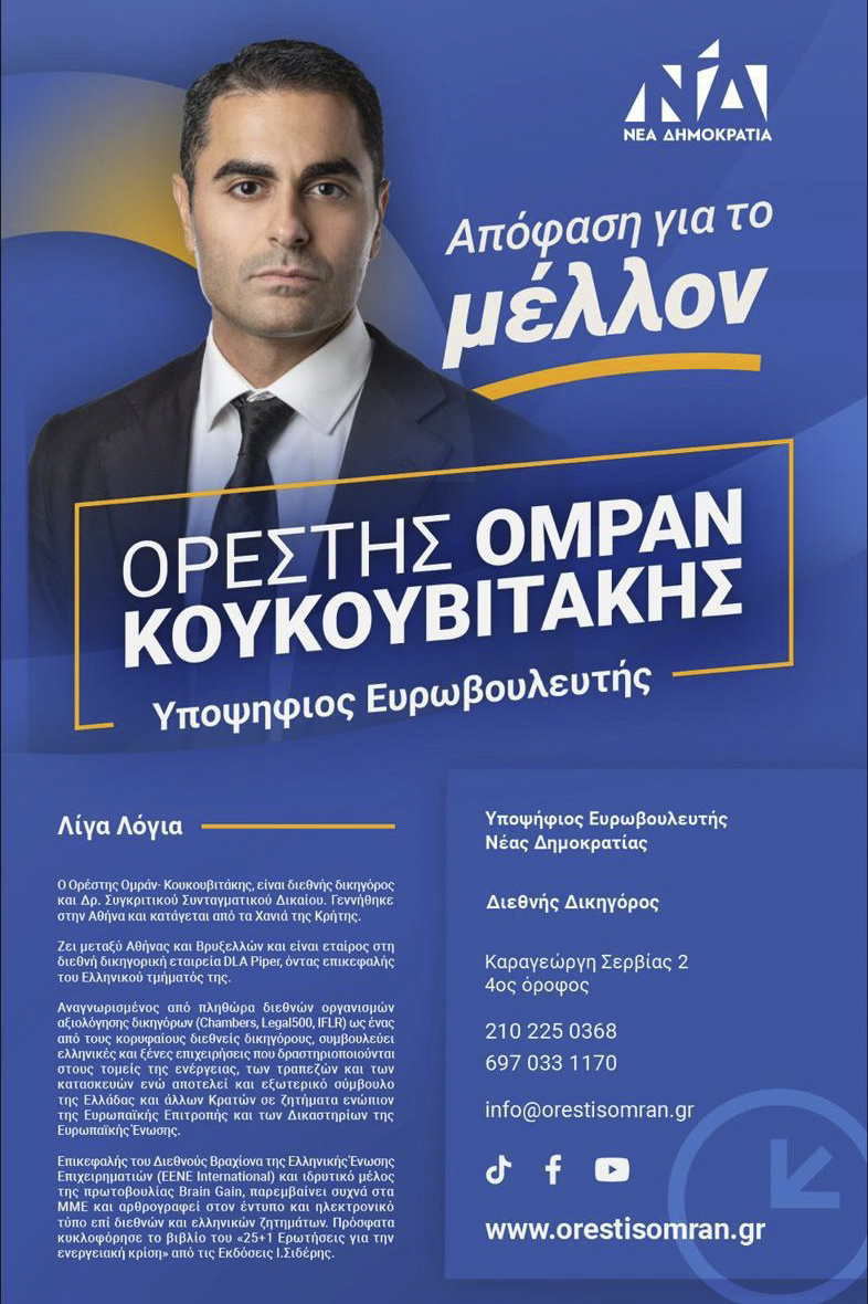 Ο υποψήφιος ευρωβουλευτής της ΝΔ Ορέστης Ομράν Κουκουβιτάκης, διεθνής δικηγόρος και Δρ. Συγκριτικού Συνταγματικού Δικαίου θα περιοδεύσει σήμερα Πέμπτη στο Κιλκίς.
