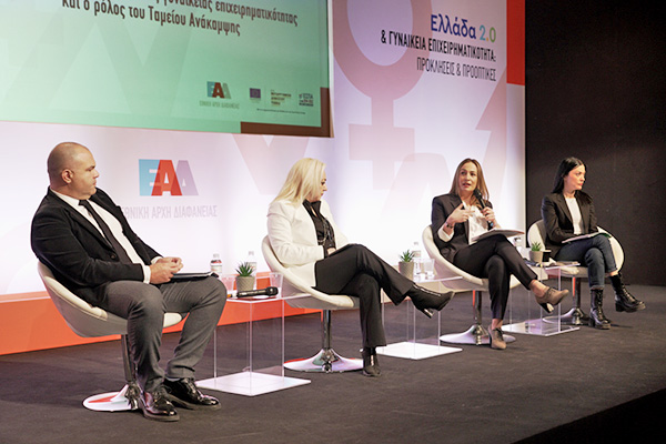 Οι τοποθετήσεις των προσκεκλημένων κινήθηκαν γύρω από τις δράσεις του Ταμείου Ανάκαμψης και Ανταγωνιστικότητας και τις ευκαιρίες που δίνονται στις γυναίκες μέσα από αυτό για ίδιες επαγγελματικές προοπτικές με τους άνδρες.