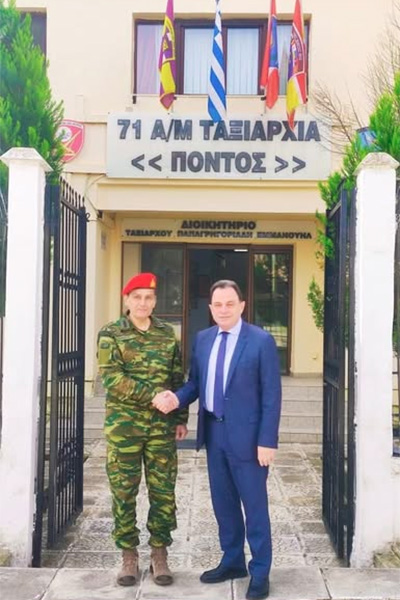 "Με ιδιαίτερη χαρά συναντήθηκα σήμερα με τον νέο Διοικητή της 71ης Αερομεταφερόμενης Ταξιαρχίας «ΠΟΝΤΟΣ», Ταξίαρχο Αριστείδη Τσουκαλά, στη Νέα Σάντα Κιλκίς.