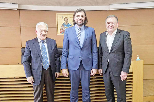 Ακολούθησε συνάντηση με τον Πρόεδρο της Κεντρικής Ένωσης Δήμων Ελλάδας (ΚΕΔΕ), Δήμαρχο Αμπελοκήπων- Μενεμένης, κ. Λάζαρο Κυρίζογλου και τον Πρόεδρο της Περιφερειακής Ένωσης Δήμων και Κοινοτήτων Κεντρικής Μακεδονίας (ΠΕΔΚΜ), δήμαρχο Πυλαίας - Χορτιάτη, κ. Ιγνάτιο Καϊτεζίδη. Συζητήθηκε η διαχρονική ανάγκη αναβάθμισης της τοπικής αυτοδιοίκησης στην οποία πρέπει να ενσκήψει η Πολιτεία ,ο σημαντικός ρόλος της, αλλά και οι προοπτικές ανάπτυξης των Δήμων της ευρύτερης περιοχής.