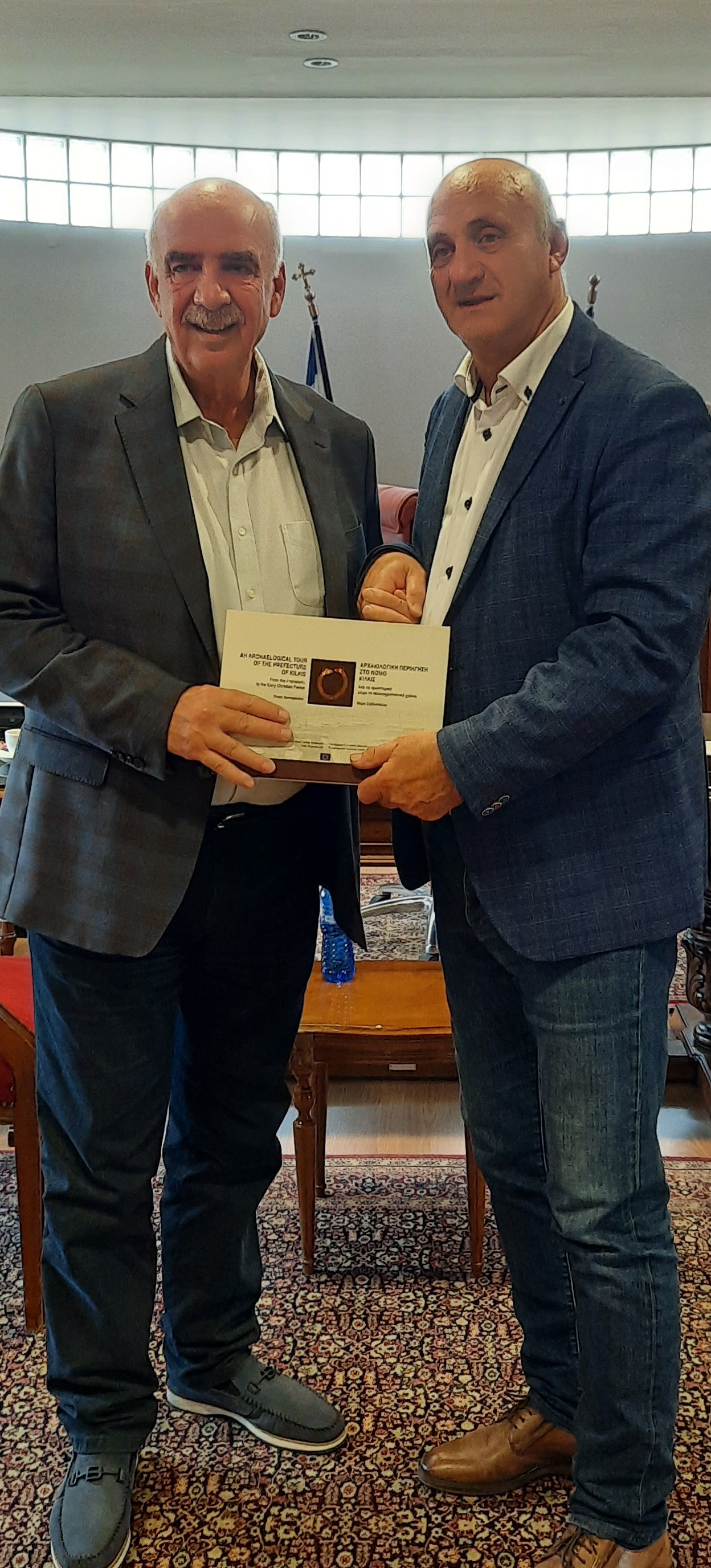 Ο κ. Βεργίδης ευχήθηκε καλή δύναμη και επιτυχία στον κ. Μεϊμαράκη στις ευρωεκλογές της 9ης Ιουνίου και δώρισε στον κ. Μεϊμαράκη έκδοση που αφορά το αρχαιολογικό "κεφάλαιο" του νομού Κιλκίς.