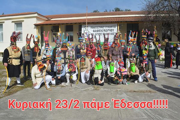 Ημερήσια εκδρομή στην Έδεσσα θα πραγματοποιήσει ο Πολιτιστικός Σύλλογος Βαφειοχωρίου «Ο Άγιος Γεώργιος», την Κυριακή 23 Φεβρουαρίου 2025, για την παρουσίαση του παραδοσιακού μπογιαλικιώτικου καρναβαλιού, "ΜΠΟΥΜΠΟΥΧΕΡΙΑ".