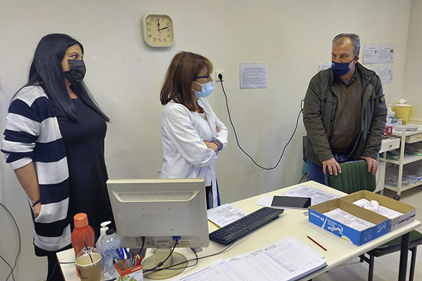 Έπειτα, συνοδευόμενος από τον Αναπληρωτή Διοικητή κ. Ζάχαρη Ηλία και τον Πρόεδρο Κοινότητας κ. Τάτση Αστέριο περιηγήθηκε στους χώρους εμβολιασμών, αναμονής και στο χώρο που έχει ετοιμαστεί για την άμεση αντιμετώπιση παρενεργειών του εμβολίου.