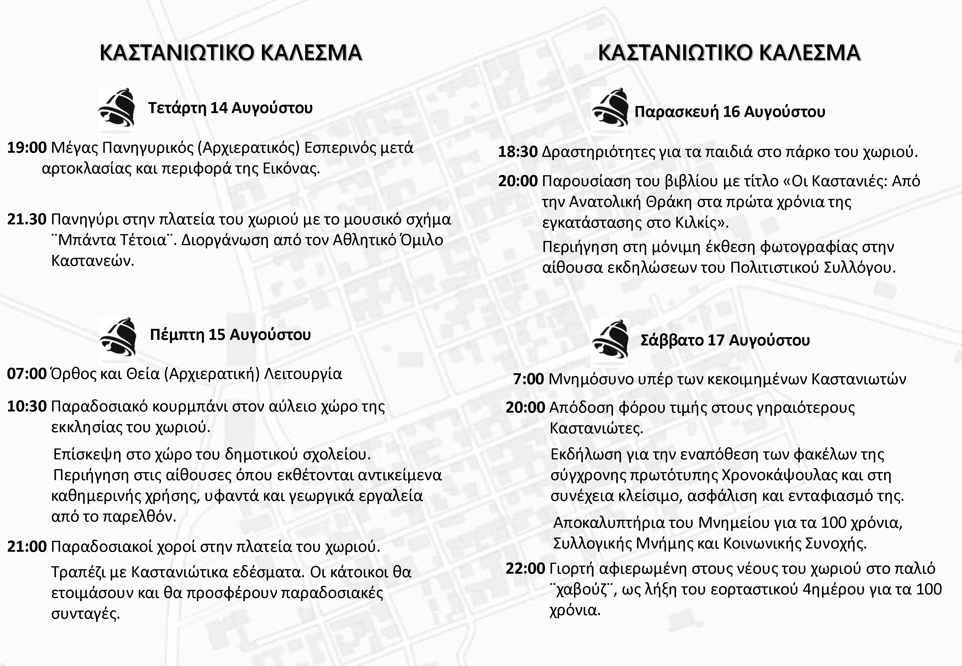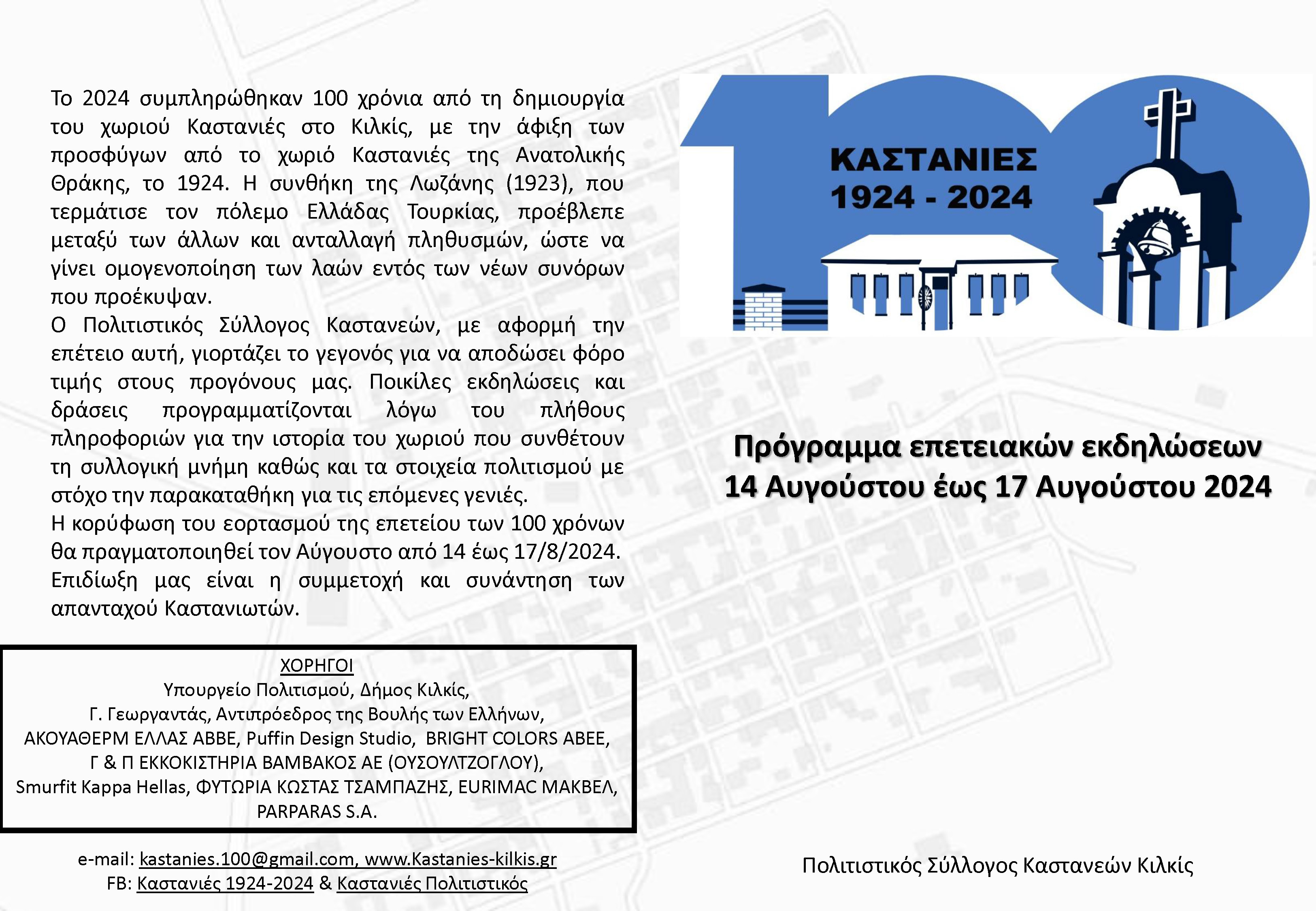 100 χρόνια Καστανιές - Πρόγραμμα επετειακών εκδηλώσεων