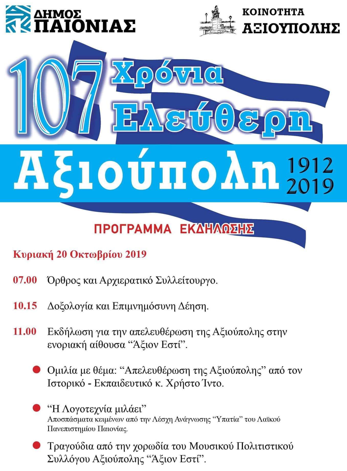 107 χρόνια Ελεύθερη Αξιούπολη