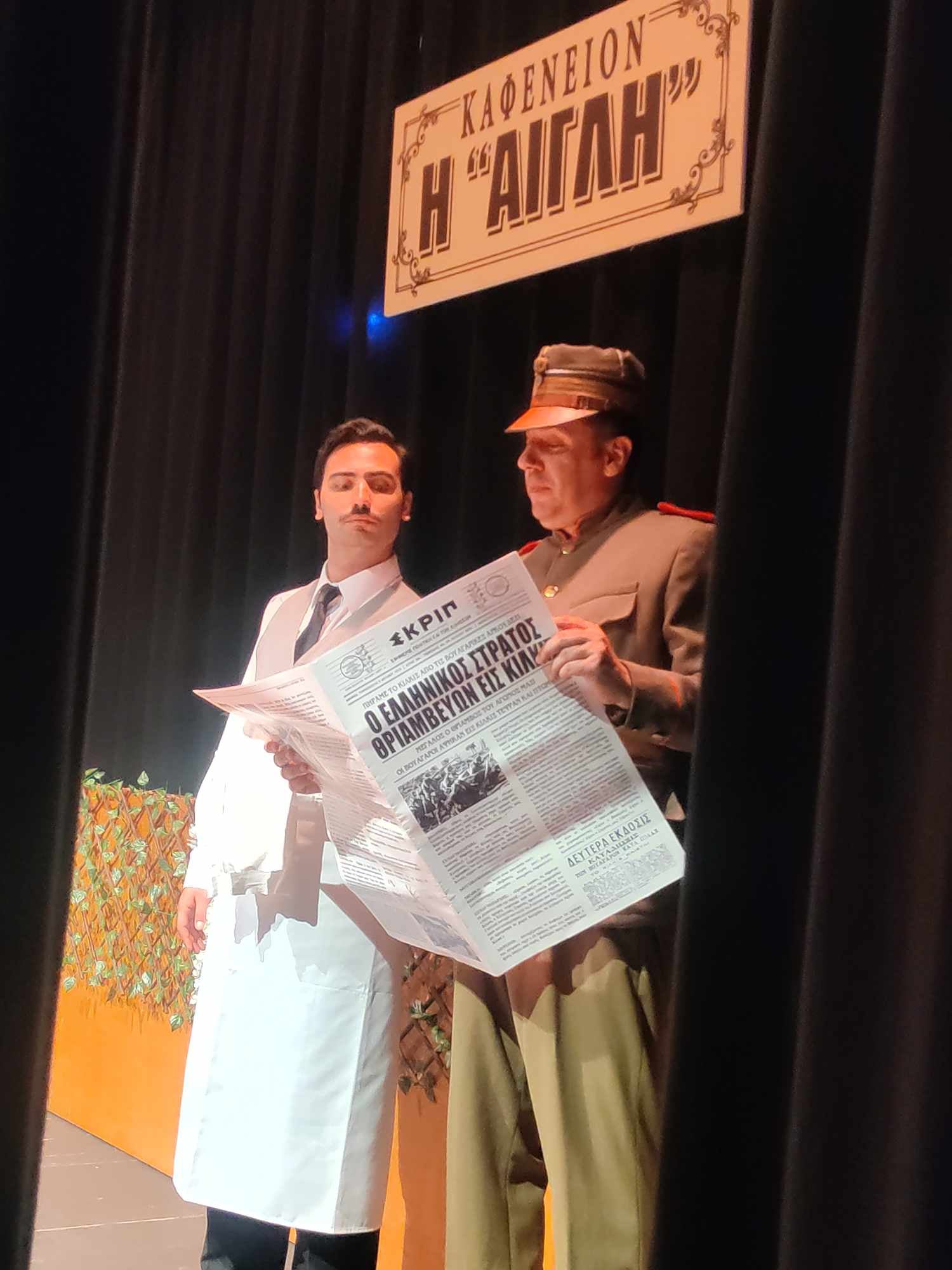 Η σκηνοθετική επιμέλεια της παράστασης, τα τραγούδια εποχής, τα όμορφα κοστούμια, η μουσική και η υποκριτική απόδοση των ηθοποιών, αλλά και τα σκηνοθετικά ευρήματα, προκάλεσαν θετικές εντυπώσεις σε όλους τους παραβρισκόμενους θεατές. Η συγκίνηση του κόσμου διαδέχονταν το αβίαστο γέλιο σε κάθε σημείο του εμβόλιμου θεατρικού κειμένου. Τραγούδια χαρακτηριστικά της εποχής που ακούστηκαν ζωντανά με τη συνοδεία πιάνου στην παράσταση, γοήτευσαν τους παρευρισκόμενους και προκάλεσαν νοσταλγηκές θύμισες στο μεγαλύτερο ηλικιακά κοινό της παράστασης, όπως το «Αχ Μαρί», «Τον καιρό εκείνο τον παλιό», «Εγώ είμαι η νέα γυναίκα», «Ψηλά στο Μέτωπο», « Σφίξε με», κ.α. Τα παραπάνω τραγούδια που συνοδεύτηκαν ζωντανά επί σκηνής αλλά και η μουσική επένδυση με πιάνο, πολύ δυνατά φορτισμένη, σε όλα σημεία του αφηγηματικού κειμένου, ενώ μαζί και με τα άρτια εκτελεσμένα τραγούδια της Οπερέτας, αποτέλεσαν το κατάλληλο «όχημα» για αυτό το όμορφο, μελωδικό «ταξίδι» στο παρελθόν της ιστορικής μας μνήμης.