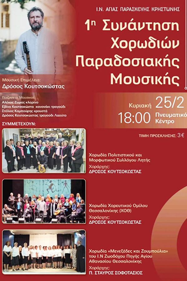 Θα ακουστούν παραδοσιακά τραγούδια αλλά και νέες συνθέσεις που υπακούουν στους κανόνες της τροπικότητας, μουσική συνέχεια στο σήμερα.
