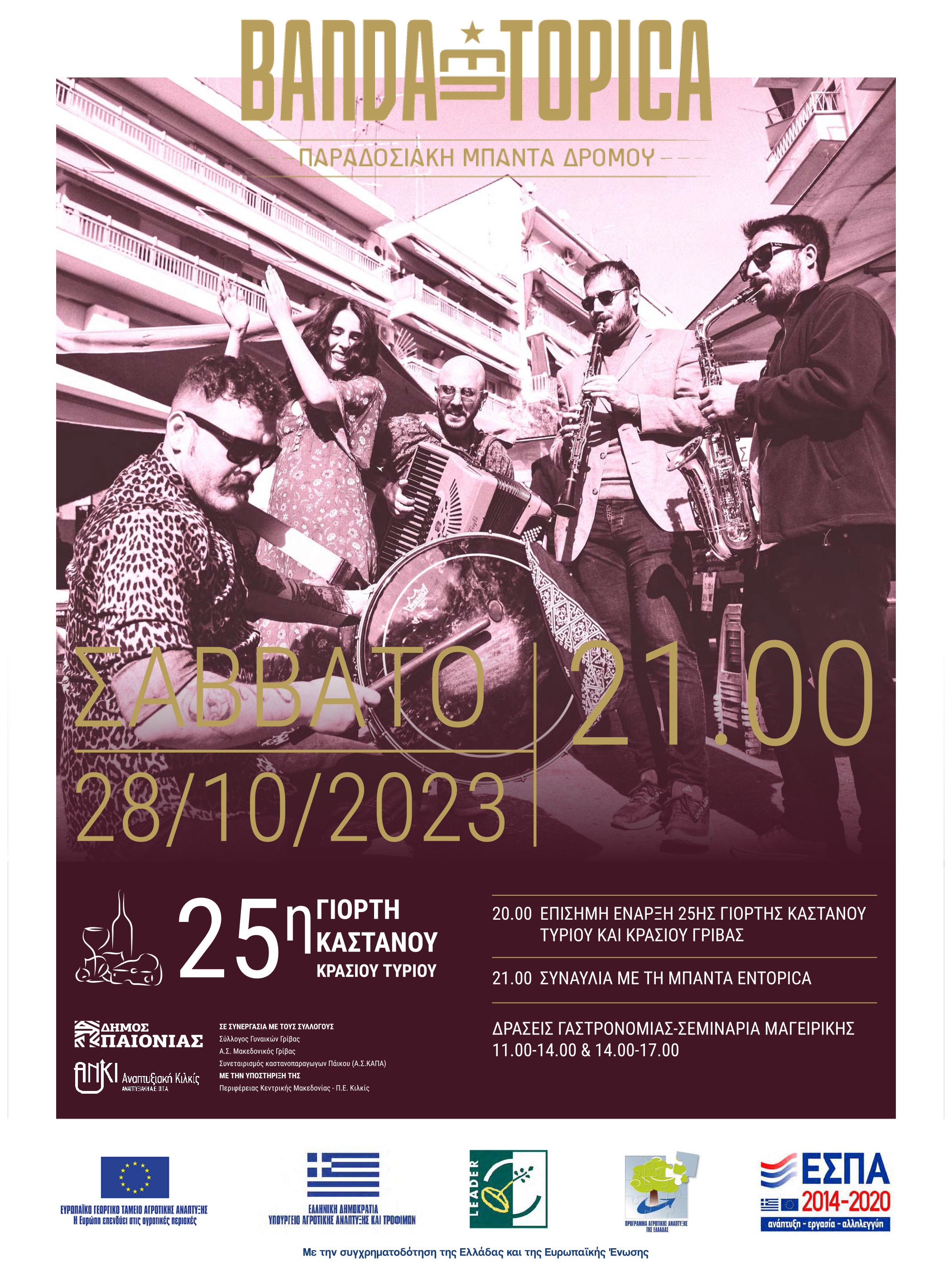 20.00 Επίσημη Έναρξη της 25ης Γιορτής Κάστανου Τυριού και Κρασιού Γρίβας