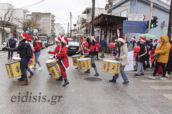 Οι δεκάδες μικροί και μεγάλοι Αη Βασίληδες του Κιλκίς ξεκίνησαν φέτος τη γιορτινή και φιλανθρωπική πορεία τους από το Χριστουγεννιάτικο Χωριό στο Πάρκο-Κήπος του Κιλκίς και από την οδό Βενιζέλου οδηγήθηκαν στο κέντρο της πόλης, με την ομάδα κρουστών άιΝΤΟς να προπορεύεται, και το ψιλοβρόχι να δίνει το δικό του ρυθμό.