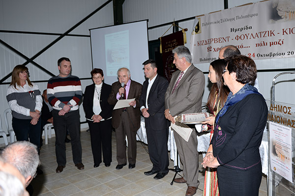 Οι εισηγητές της ημερίδας ήταν ο κύριος Χρήστος Κυμπαρίδης συνταξιούχος εκπαιδευτικός, ο κύριος Απόστολος Καραγιαννόπουλος διοικητικός υπάλληλος του δήμου Παιονίας και ο κύριος Γεώργιος Μανινής δικηγόρος και τέως δήμαρχος Ν. Κίου Αργολίδας, οι οποίοι έκαναν μια ιστορική αναδρομή για το Κίζδερβεντ, το Φούλατζικ και την Κίο αντίστοιχα.