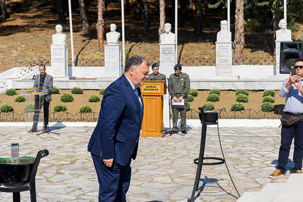 Ο Δήμαρχος Παιονίας στην ομιλία του εκθείασε τον Πατριωτισμό των πεσόντων συμμάχων οι οποίοι έχυσαν το αίμα τους για το υπέρτατο αγαθό της Ελευθερίας και για την Παγκόσμια Ειρήνη. «Όλοι εμείς έναν αιώνα μετά τη φονικότατη αυτή μάχη είμαστε εδώ και απολαμβάνουμε το αγαθό της ελευθερίας καλούμενοι να αναθεωρήσουμε τη σκέψη μας και να επανακαθορίσουμε τις προτεραιότητες μας. Η μνήμη της νικηφόρας αυτής μάχης, αναδεικνύει αυτή τη συλλογική συνείδηση που έχουμε όλοι μας ανάγκη. Με βάση τις αξίες και τον ανθρωπισμό μας να προωθήσουμε την κοινωνική συνοχή ορίζοντας τα όρια της ελευθερίας μας στο σημείο που ξεκινούν τα όρια της ελευθερίας του άλλου. Στις δύσκολες στιγμές τις οποίες διέρχεται η Πατρίδα, είναι υποχρέωση μας να έχουμε το κεφάλι ψηλά και να είμαστε ο ένας πλάι στον άλλο».
