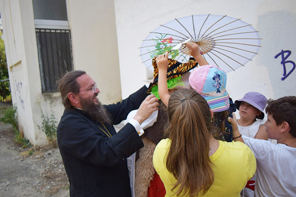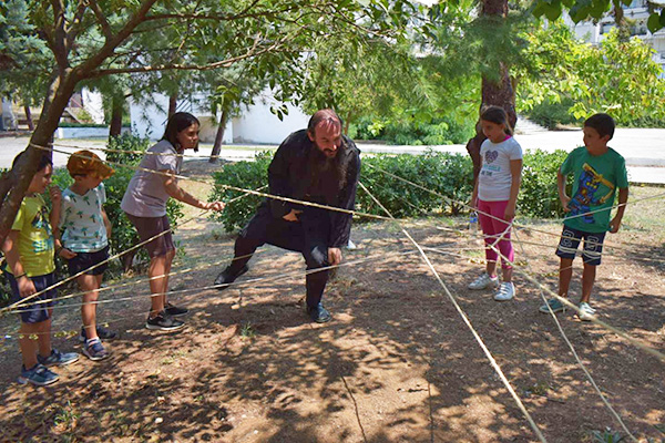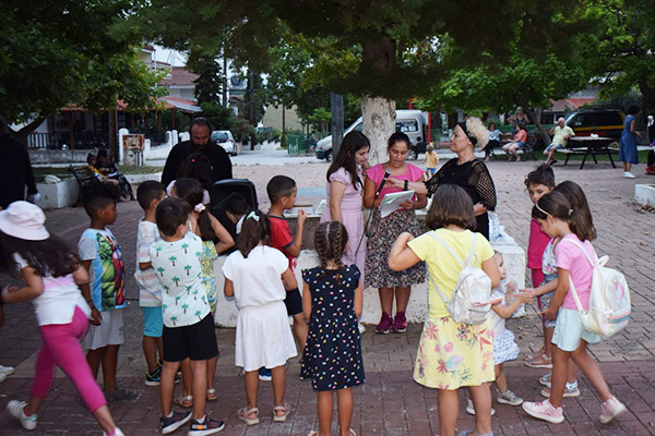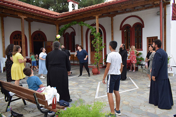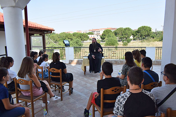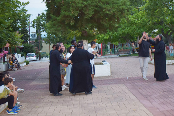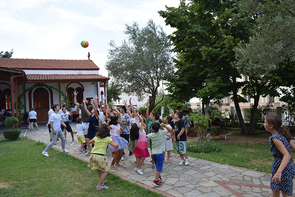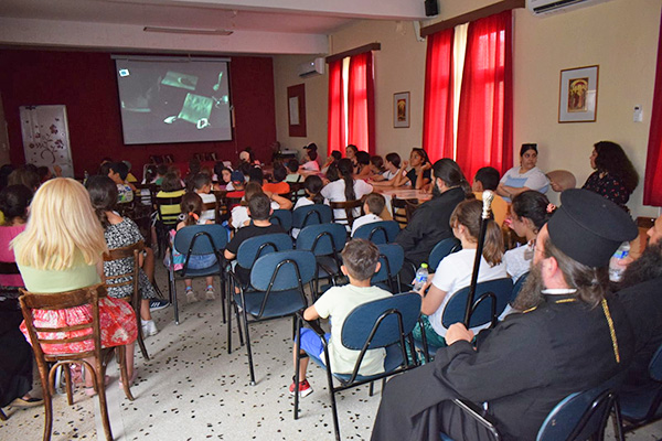 Ακολούθως με λεωφορεία όλοι μεταφέρθηκαν στον Ιερό Ναό των Αγίων Νικολάου & Βασιλείου ώστε να πραγματοποιηθεί η κατηχητική σύναξη και μετά στην αυλή του Ιερού Ναού των Πεντεκαίδεκα Μαρτύρων, των Πολιούχων της Πόλεως, όπου σε συνεργασία με στελέχη του ελληνικού οδηγισμού, συμμετείχαν όλοι σε διάφορα παιχνίδια.