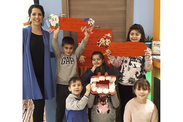 Στο ταξίδι μας στον υγιεινό τρόπο ζωής κάναμε μία στάση και στη στοματική υγιεινή. "Η καλή υγεία ξεκινά από το στόμα" υποστηρίζουν οι επιστήμονες και εμείς επικροτούμε την πρόταση αυτή. Έτσι, αφού ενημερωθήκαμε σχετικά με τις ασθένειες των δοντιών, όπως η τερηδόνα και η ουλίτιδα, αλλά και τους τρόπους με τους οποίους μπορούμε να τις αντιμετωπίσουμε ή ακόμα και να τις αποφύγουμε, κατασκευάσαμε ένα δικό μας προσομοίωμα δοντιών. Ταυτόχρονα, γράψαμε και κάποιους κανόνες στοματικής υγιεινής και στολίσαμε το χώρο μας με αυτούς.