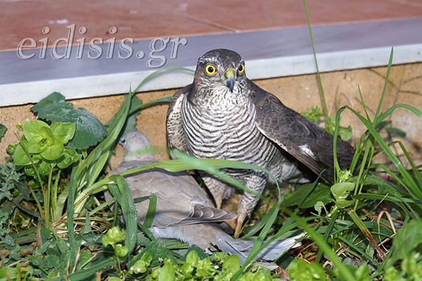 Η Φύση δεν είναι μόνο ομορφιά. Ούτε λειτουργεί με κανόνες αποδεκτούς από τον άνθρωπο. Ο νόμος της φύσης είναι συχνά αμείλικτος. Ο κάθε φορά αδύναμος στο έλεος του κάθε φορά ισχυρού. Στην αυλή μας, στα γραφεία μας, έλαχε το κακό συναπάντημα για το αδύναμο περιστεράκι. Το γεράκι από τη θέση του ισχυρού αφού το κακοποίησε στον αέρα, το ανάγκασε σε υποχρεωτική προσγείωση. Και τώρα ετοιμάζεται να δρέψει τους καρπούς της ισχύος του.