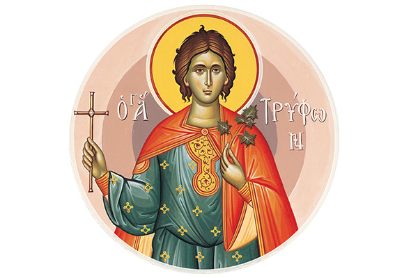 Στην πόλη μας, και ιδιαίτερα στην Ενορία του Αγίου Δημητρίου, μεταφέρθηκε η ευλάβεια αυτή προς τον Άγιο Τρύφωνα από τους πρόσφυγες που ήρθαν εδώ από την Στενήμαχο. Γι΄αυτό και κάθε χρόνο, στην εορτή του, γιορτάζουν οι Στενημαχίτες, αλλά και η Ενορία, την μνήμη του, παρόλο που σήμερα δεν καλλιεργούνται αμπέλια.