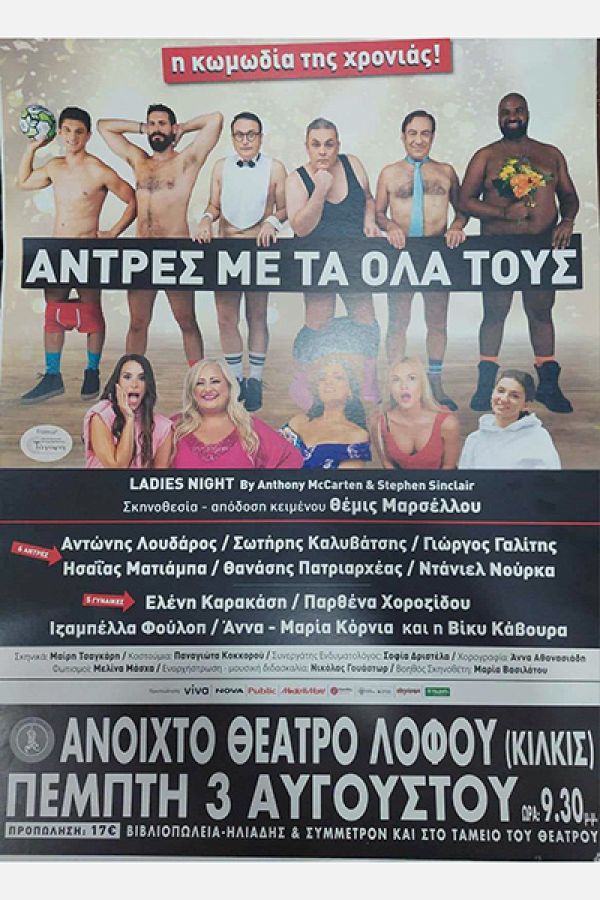 Σε μια Αθήνα, μετά την πανδημία και μέσα στην ενεργειακή κρίση, έξι άντρες εντελώς διαφορετικοί μεταξύ τους, με μόνο κοινό το ότι μένουν στην ίδια γειτονιά, έχουν μείνει άνεργοι...Στην απελπισία τους και μέσα από κωμικοτραγικές καταστάσεις, αποφασίζουν να κάνουν όλοι μαζί ένα σόου με στριπτήζ, για να μπορέσουν να βγάλουν χρήματα και να σώσουν ότι προλαβαίνουν από τις ζωές τις δικές τους και των οικογενειών τους... Μόνο που κανείς απ' αυτούς δεν ξέρει να χορεύει και κυρίως να γδύνεται!! Άντρες με τα...όλα τους...Μια παράσταση γεμάτη γέλιο, ανατροπές, ανθρώπινες ιστορίες, αγάπη, χορό, μουσική και στριπτήζ!!!
