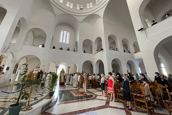 Στον Εσπερινό προέστη στον ιερό Ναό της Αγίας Τριάδος Πολυκάστρου με τον οικείο Ιεράρχη Σεβ. κ. Δημήτριο. Αντελλάγησαν προσφωνήσεις και ακολούθως η εόρτια ομιλία του φιλοξενουμένου Ιεράρχου. Παρέστησαν ο Υφυπουργός Ψηφιακής Διακυβέρνησης κ. Γεώργιος Γεωργαντάς, ο Αντιπεριφερειάρχης Κιλκίς κ. Ανδρέας Βεργίδης, ο Δήμαρχος Παιονίας κ. Κωνσταντίνος Σιωνίδης, ο Διοικητής της Π.Υ. Πύραρχος κ. Χρήστος Γκαντίδης, ο Δκτής του Α.Τ. Πολυκάστρου κ. Αντώνιος Μπουζαλάς, ο τ. δήμαρχος και επικεφαλής της μείζονος μειοψηφίας Δ.Σ. Παιονίας κ. Χρήστος Γκουντενούδης καθώς και οι πιστοί που προσήλθαν, τηρώντας τα επιβαλλόμενα μέτρα. Στη συνέχεια λιτανεύθηκε η εικόνα της Αγίας Τριάδος στη σύντομη διαδρομή που ακολουθήθηκε.