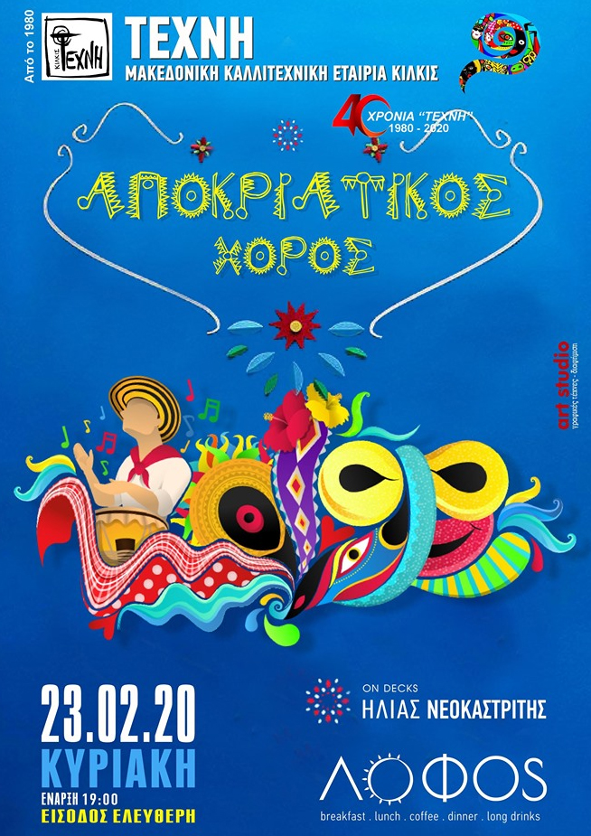 Η ΤΕΧΝΗ διοργανώνει με πολύ κέφι τον αποκριάτικο χορό της και σας καλεί, με ελεύθερη είσοδο, σε μια βραδιά χορού, κεφιού, καλής διάθεσης και πολύ πολύ μουσική.