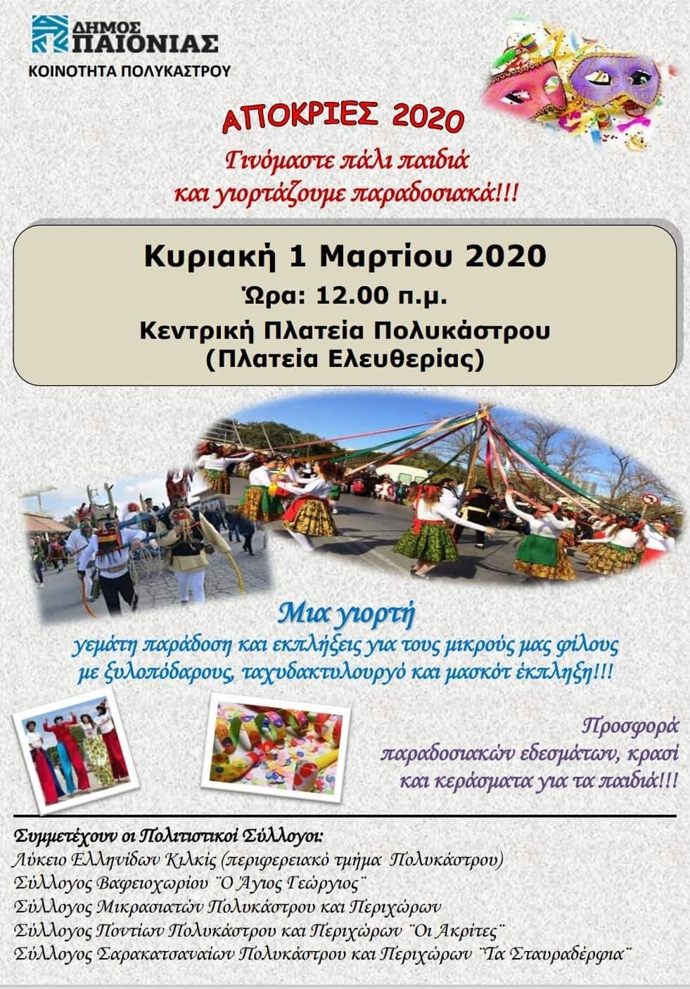 Η εκδήλωση θα γίνει στις 12 το μεσημέρι, στην κεντρική πλατεία Πολυκάστρου, με τη συμμετοχή όλων των τοπικών συλλόγων.
