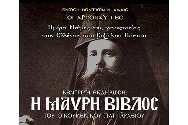 Με ιδιαίτερο σεβασμό στο έργο που επιτελέστηκε από το Οικουμενικό Πατριαρχείο, αυτού της καταγραφής και διάσωσης σε έντυπη μορφή των βίαιων εκδιώξεων του λαού μας στον Εύξεινο Πόντο, η Ένωση Ποντίων ν. Κιλκίς διοργανώνει σχετική εκδήλωση με θέμα: Η ΜΑΥΡΗ ΒΙΒΛΟΣ ΤΟΥ ΟΙΚΟΥΜΕΝΙΚΟΥ ΠΑΤΡΙΑΡΧΕΙΟΥ. ΟΙ ΔΙΩΓΜΟΙ ΚΑΙ ΤΑ ΜΑΡΤΥΡΙΑ ΤΟΥ ΕΝ ΠΟΝΤΩ ΟΜΟΓΕΝΟΥΣ ΠΛΗΘΥΣΜΟΥ.