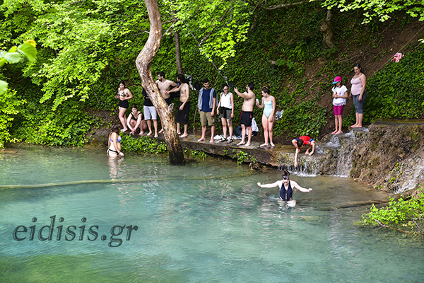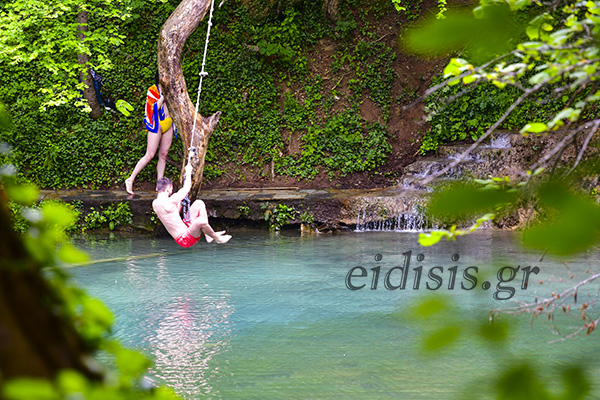 Βουτιές και Selfig στα σμαραγδένια και παγωμένα νερά της Γαλάζιας Λίμνης στους καταρράκτες του Σκρα.