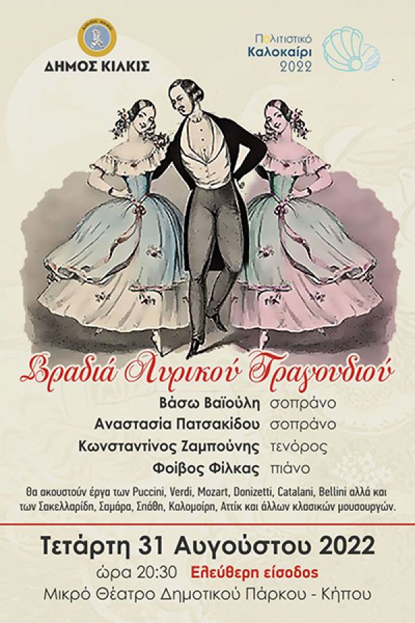 Μαζί με τον εξαιρετικό τενόρο Κωνσταντίνο Ζαμπούνη, οι Κιλκισιώτισσες υψίφωνοι θα παρουσιάσουν ένα πρόγραμμα με άριες, ντουέτι και τρίο από γνωστά έργα όπερας και οπερέτας του διεθνούς ρεπερτορίου αλλά και Ελλήνων συνθετών.