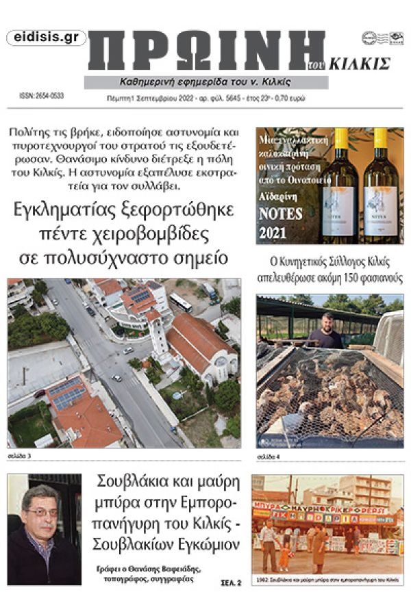 Διαβάστε το νέο πρωτοσέλιδο της Πρωινής του Κιλκίς, μοναδικής καθημερινής εφημερίδας του ν. Κιλκίς (1-9-2022)