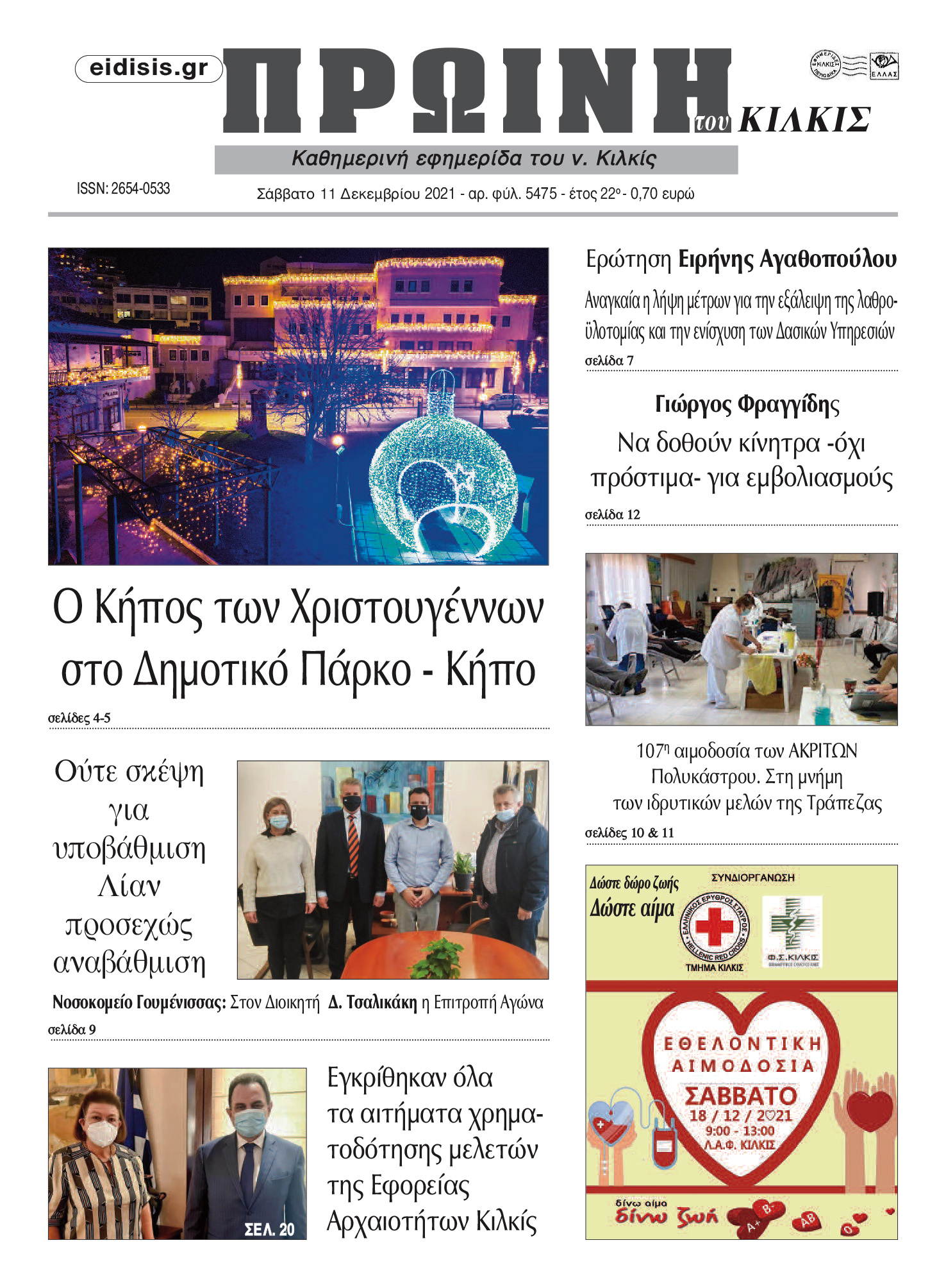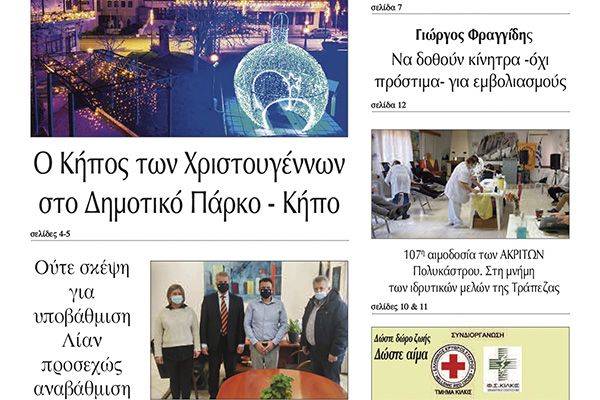 Διαβάστε το νέο πρωτοσέλιδο της Πρωινής του Κιλκίς, μοναδικής καθημερινής εφημερίδας του ν. Κιλκίς (11-12-2021)