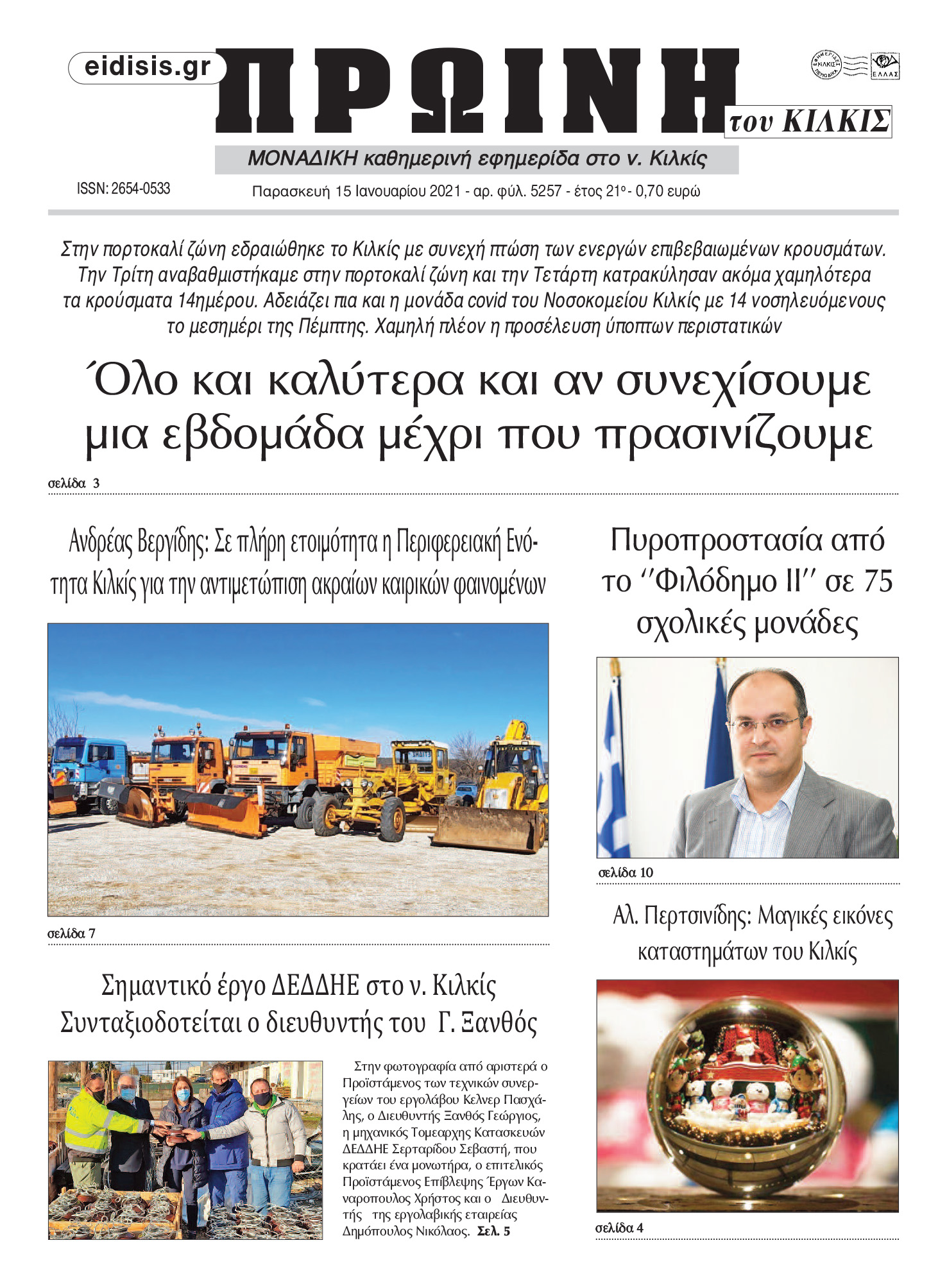Διαβάστε το νέο πρωτοσέλιδο της Πρωινής του Κιλκίς, μοναδικής καθημερινής εφημερίδας του ν. Κιλκίς (15-1-2021)